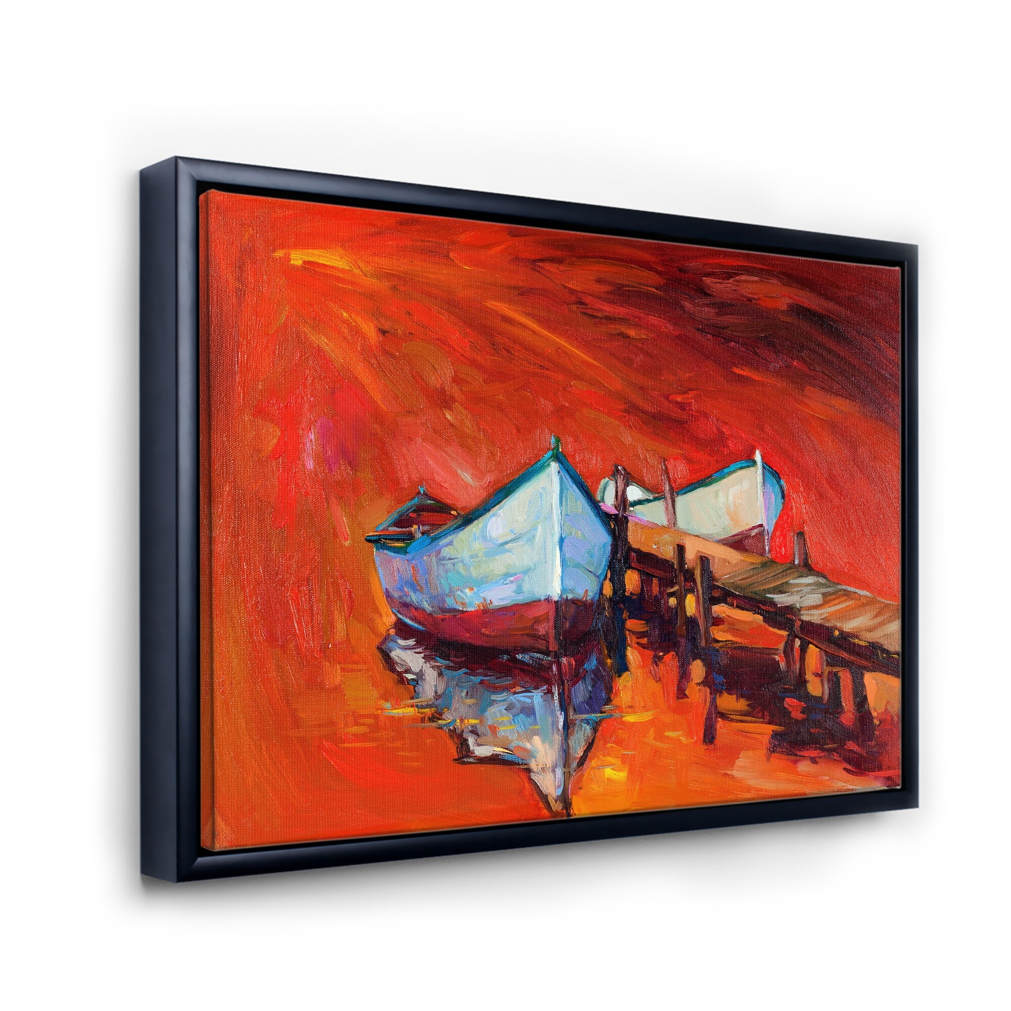 Designart "Boats In the Harbor During Warm Colourd Sunset II" Nautical & Coastal Framed Art Print