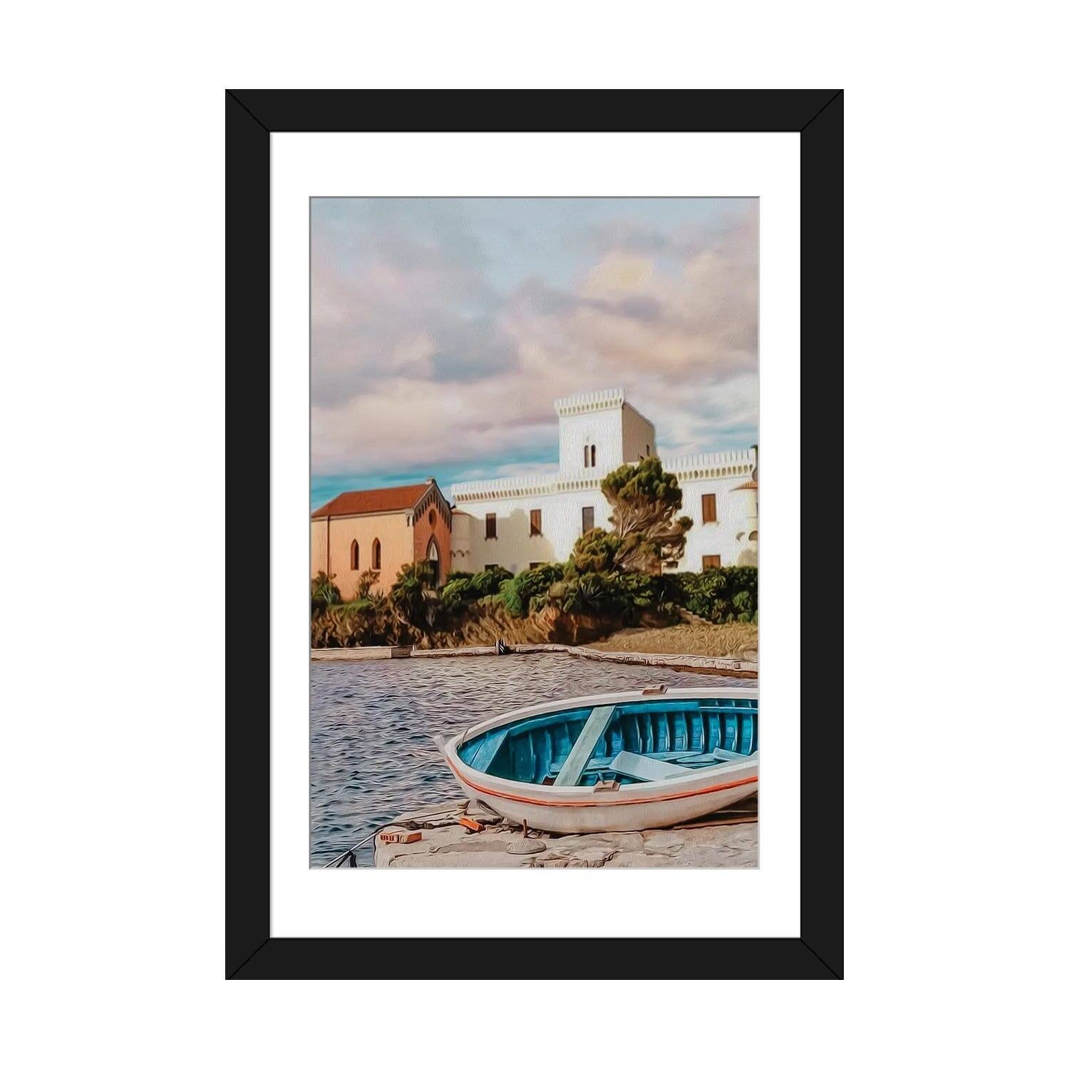 iCanvas "The Little Grey Boat" by Chrys Roboras Framed|White