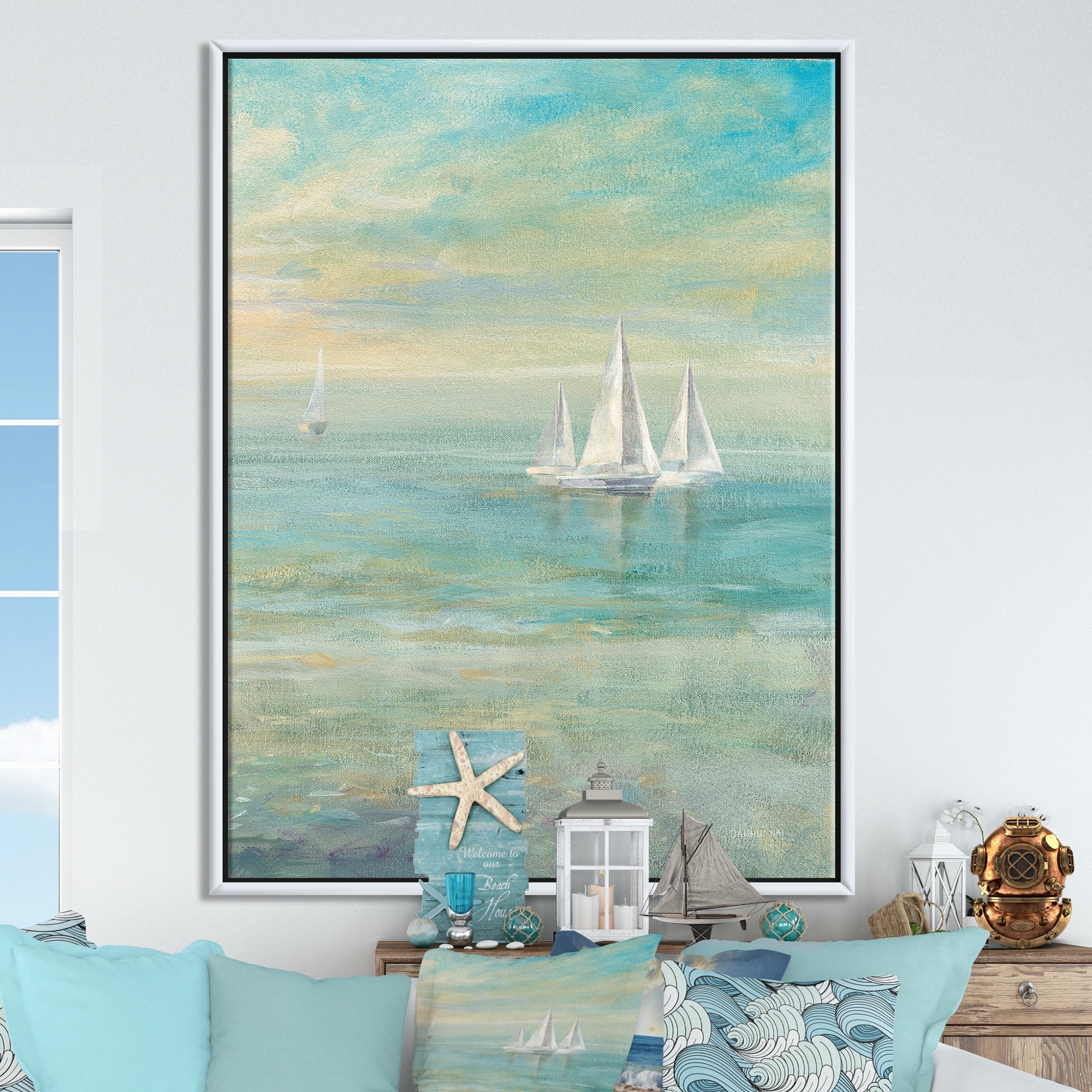 Designart "Boat Drifting Away After Storm" Modern Seashore Canvas Wall Art Print
