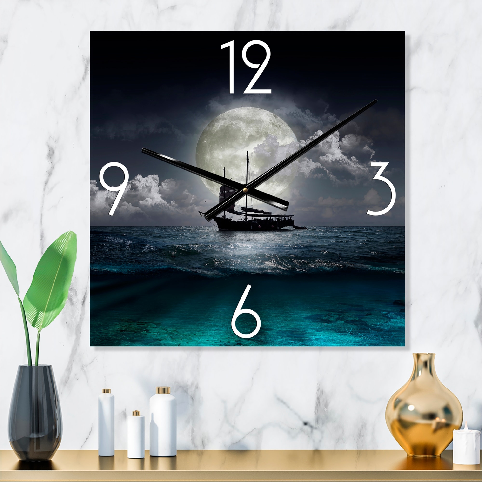 Designart 'Fisher Boat on the Lake During Full Moon' Nautical & Coastal wall clock