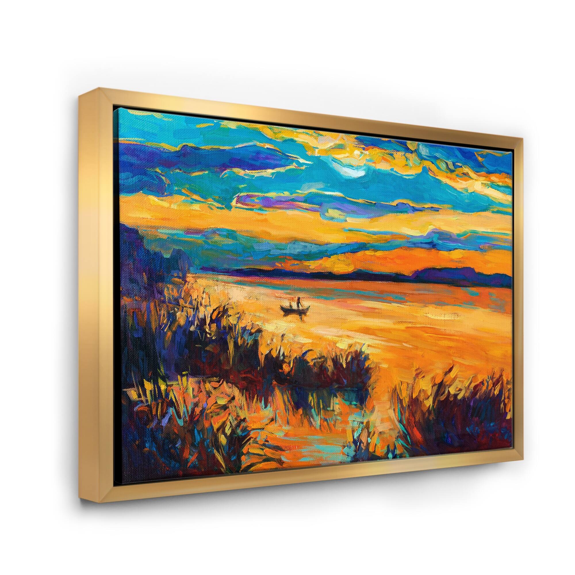 Oliver Gal 'Morning Lake Boat' Abstract Wall Art Framed Canvas Print Paint - Yellow, Orange