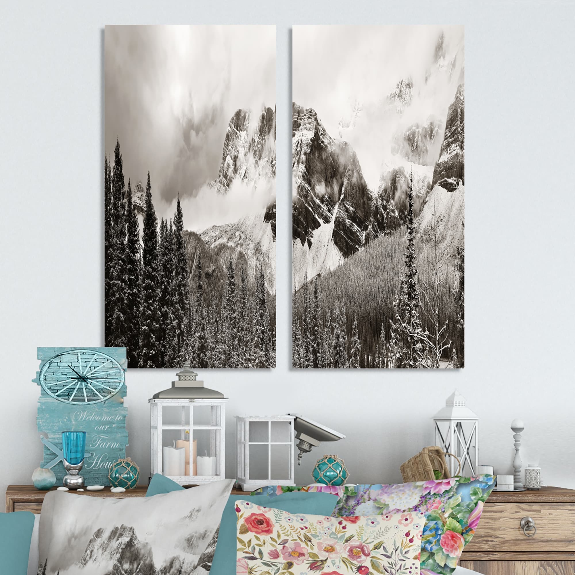 Designart "Snow Capped Hills and Bow Lake" Landscape Canvas Wall Art Print 2 Piece Set