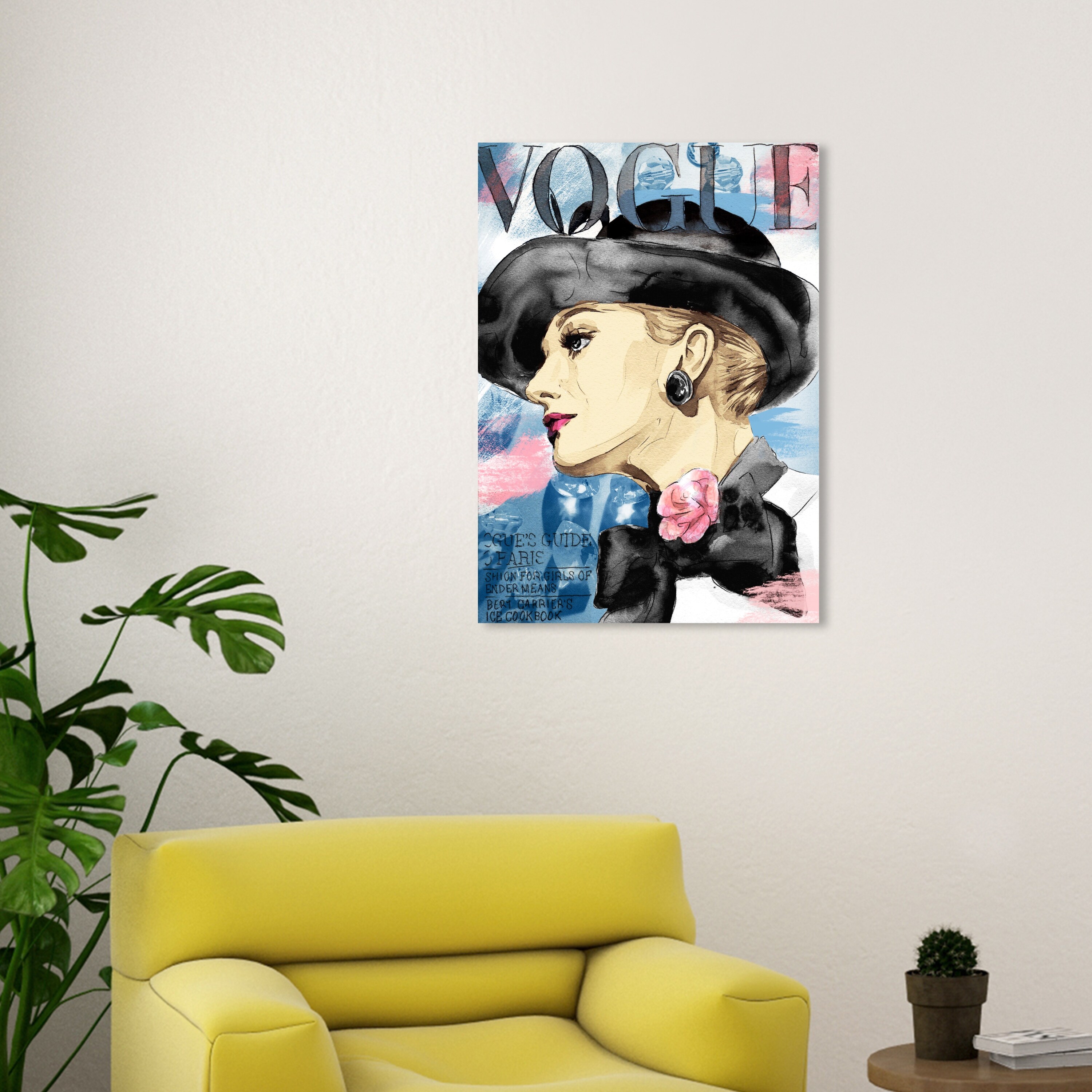 Wynwood Studio Canvas Fashion and Glam Hat and Bow Blue and Pink Black and Modern & Contemporary Wall Art Canvas Print