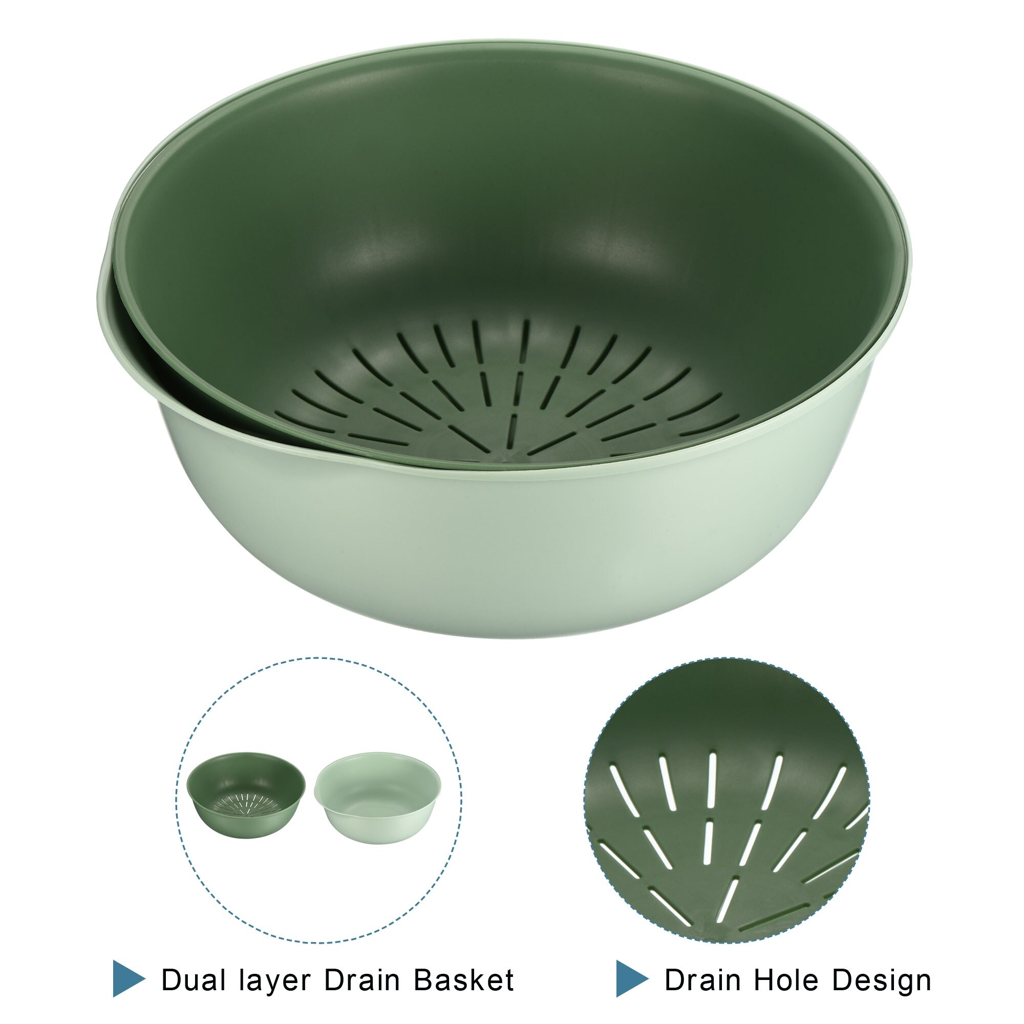Colander Bowl Set 4PCS, Fruit Vegetable Washing Basket - Round & Oval - Blue+Green