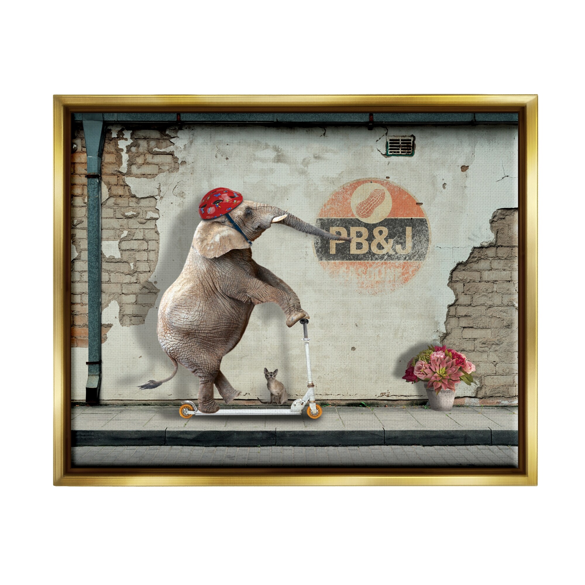 Stupell Elephant Riding Scooter Old Brick City Streets Floater Frame, Design by Nobleworks