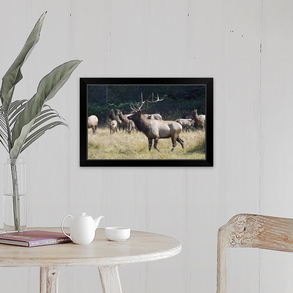"Roosevelt Bull Elk with Herd" Black Framed Print