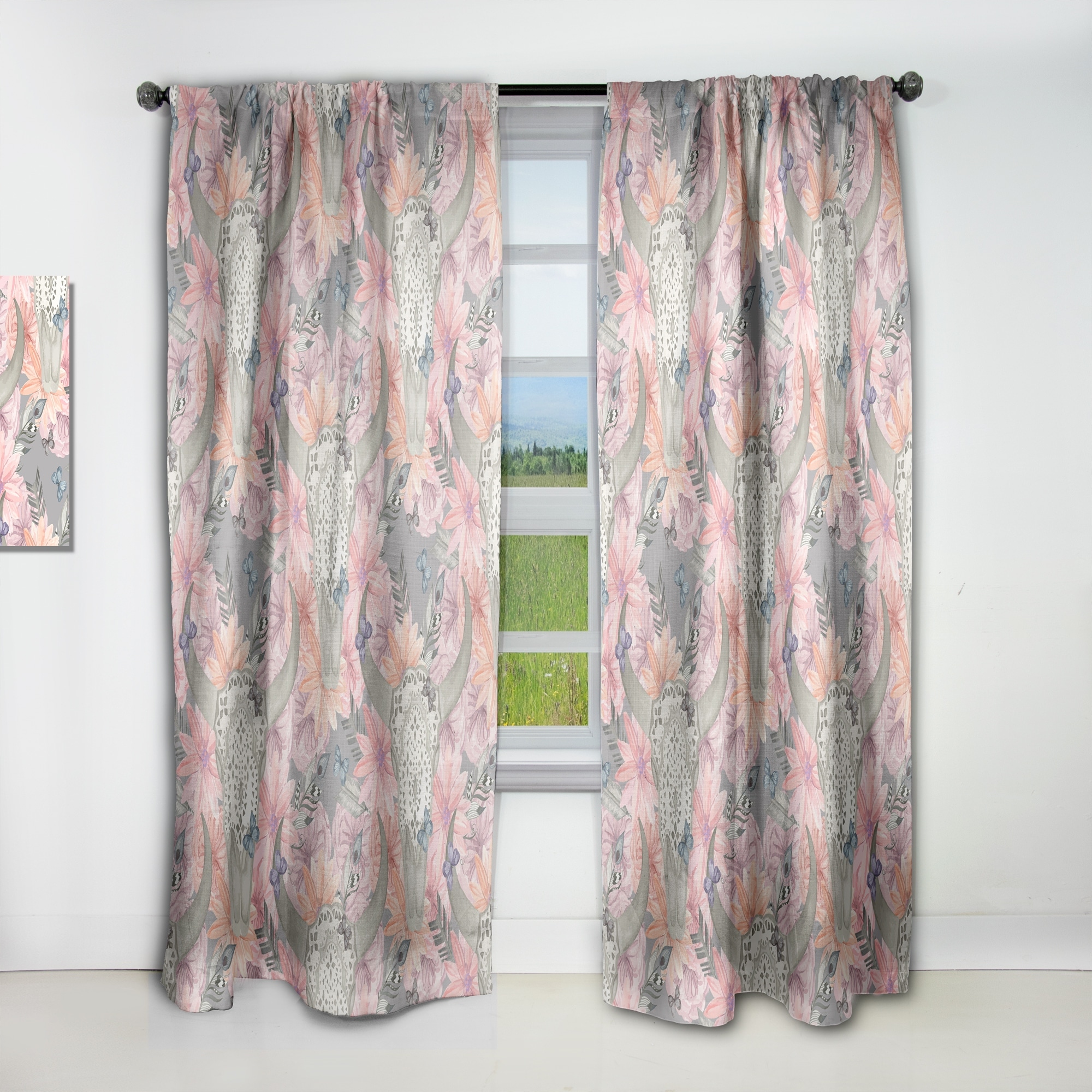 Designart 'Skull Bull in Flowers' Bohemian & Eclectic Blackout Curtain Single Panel