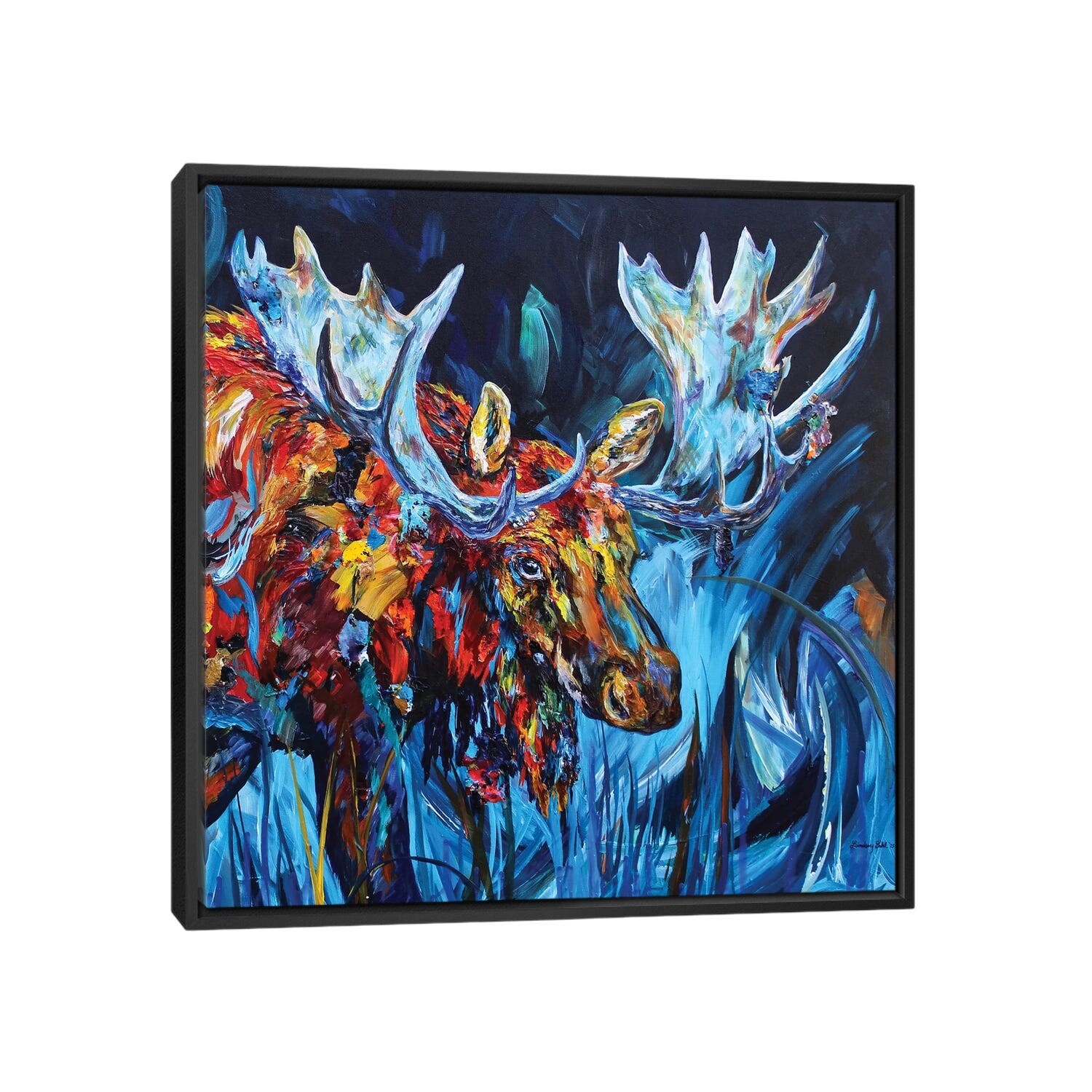 "Bull elk" Black Float Frame Canvas Art
