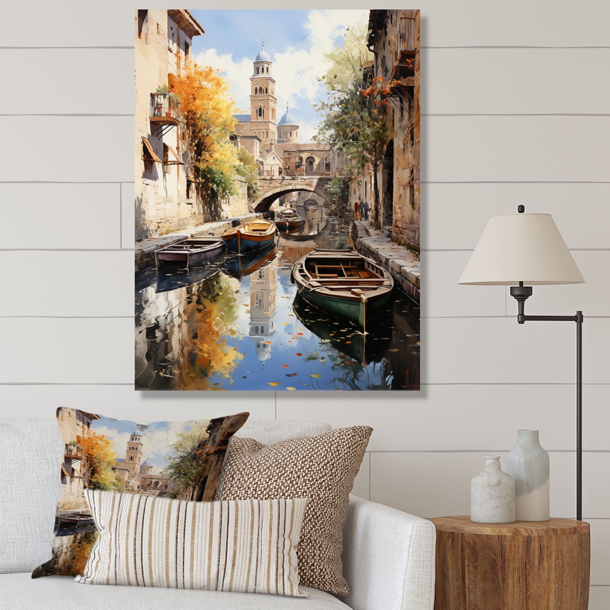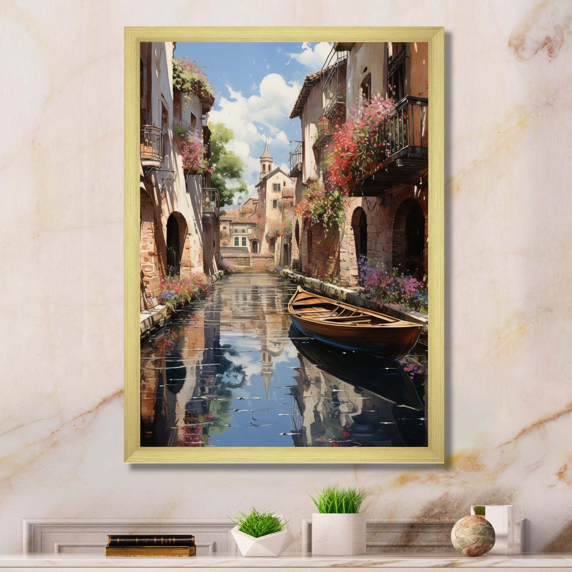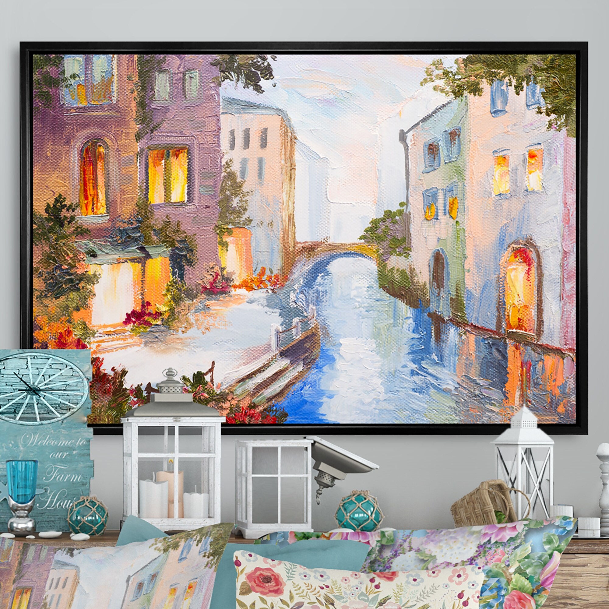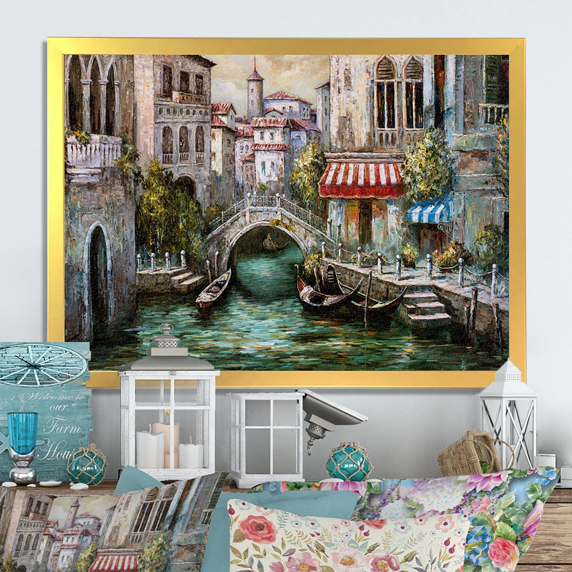 Designart "Summer Canal in Venice" French Country Framed Canvas Wall Decor