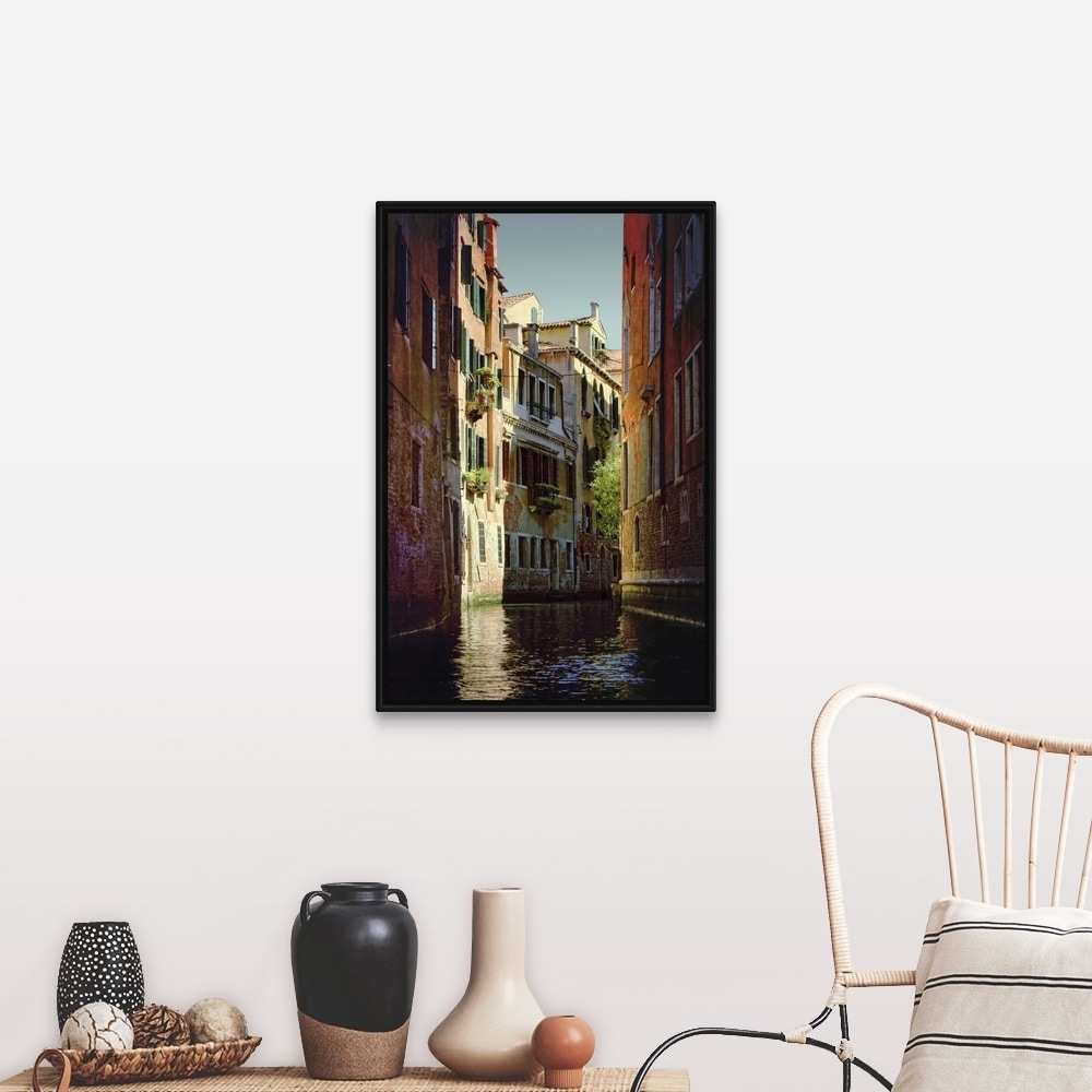 "Back Street Canal, Venice" Black Float Frame Canvas Art