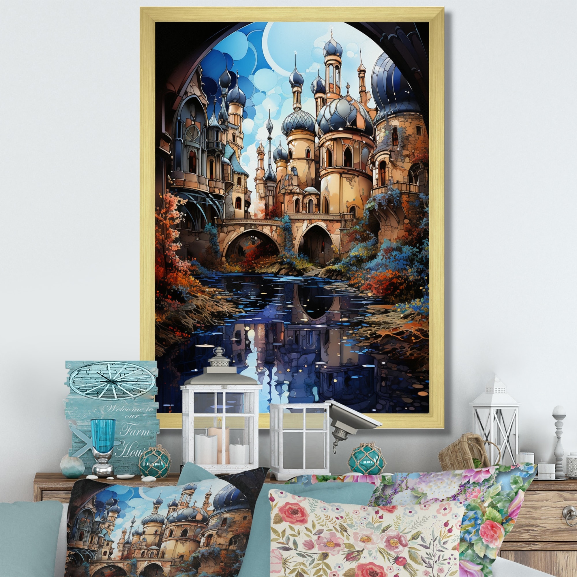 Designart "Beige Canal Surreal Waterways Magical II" Canals Framed Wall Art Living Room