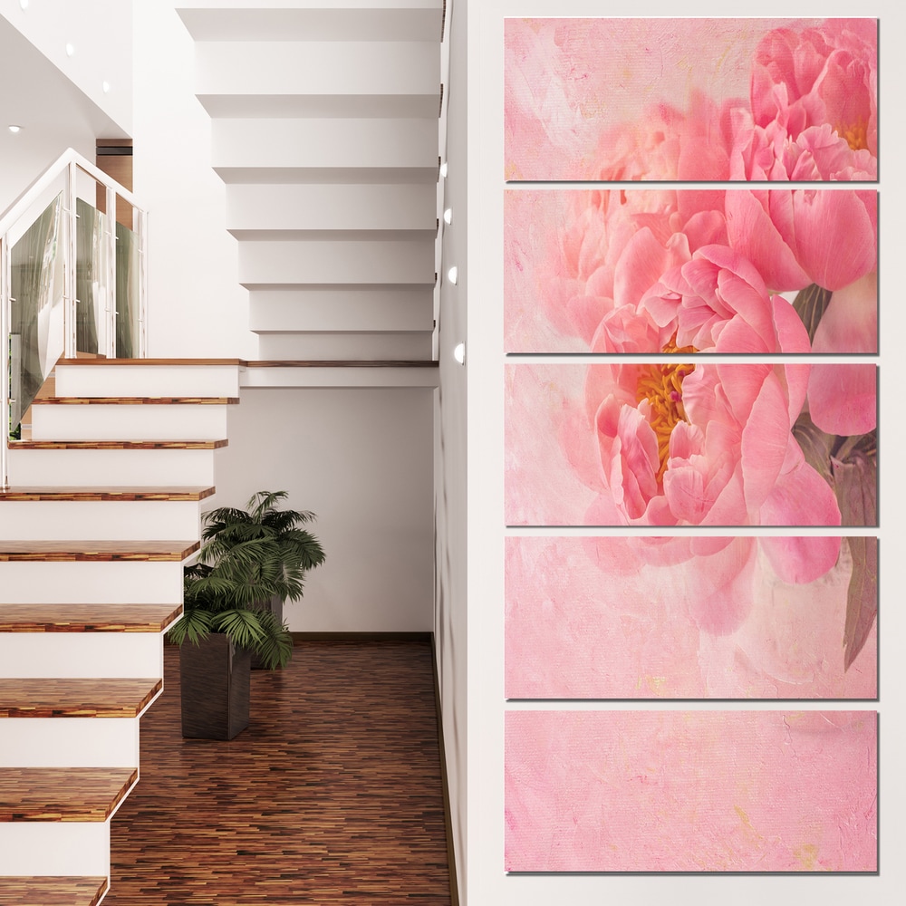 Designart "Peony Flowers on Pink Background" Floral Canvas Artwork Print