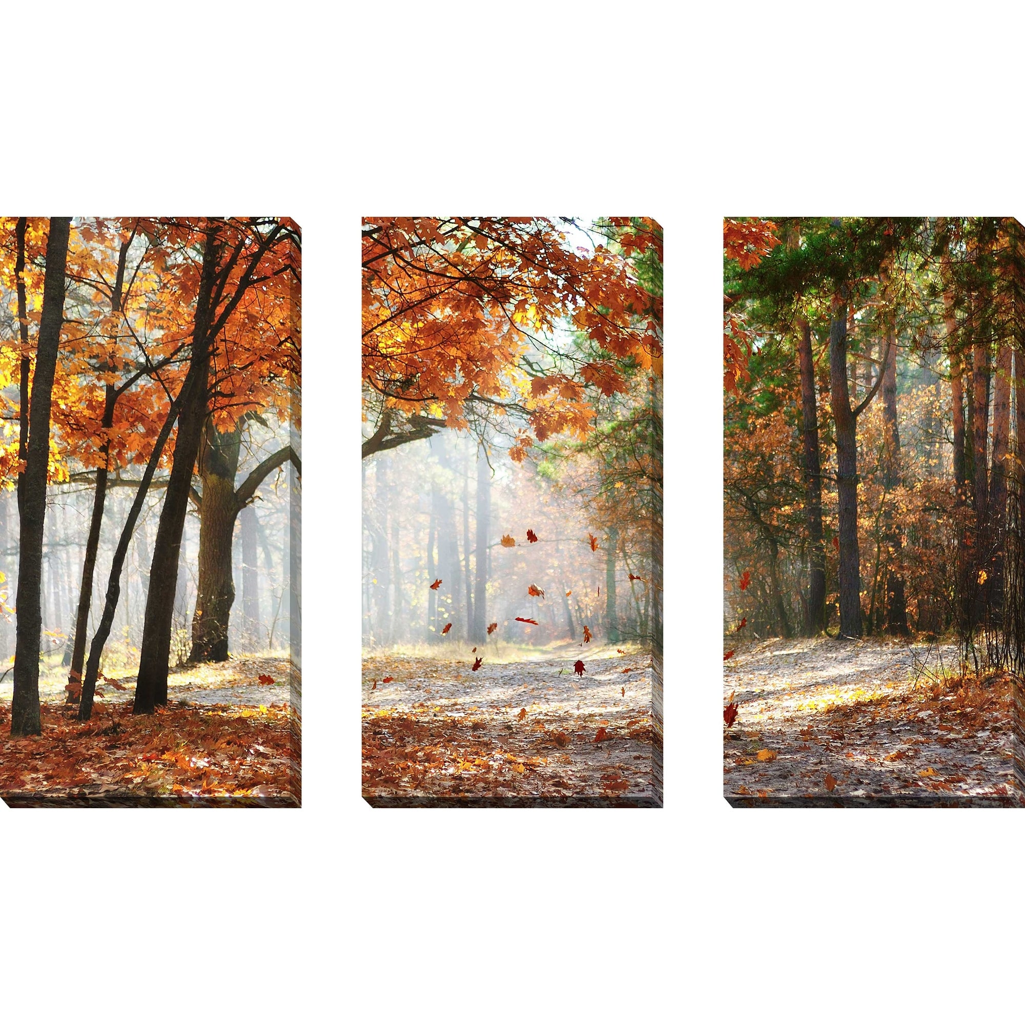 "Falling Oak Leaves" 3 Piece Set on Canvas