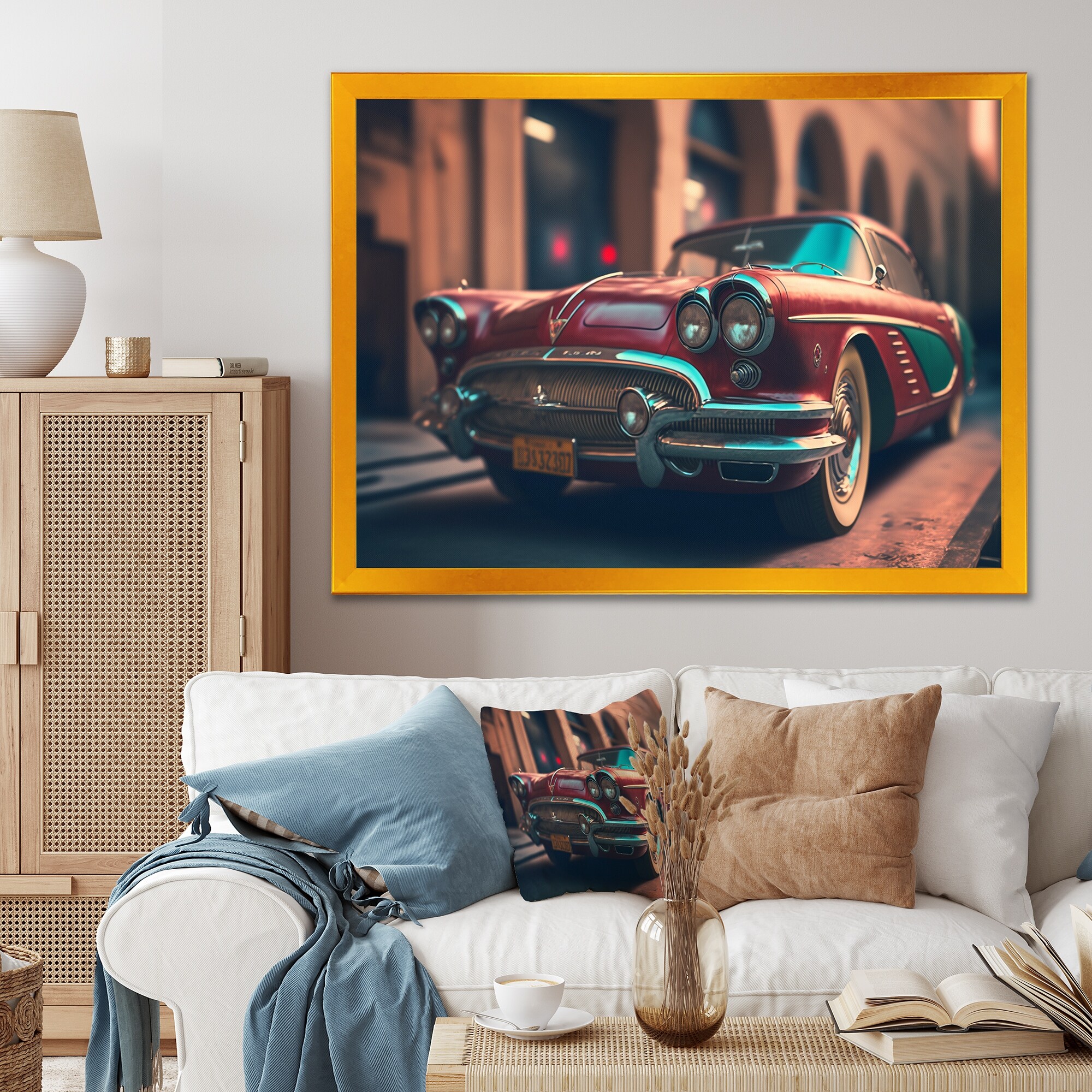 Designart "Beautiful Vintage Car in Retro Colors IV" Retro Car Framed Art Print