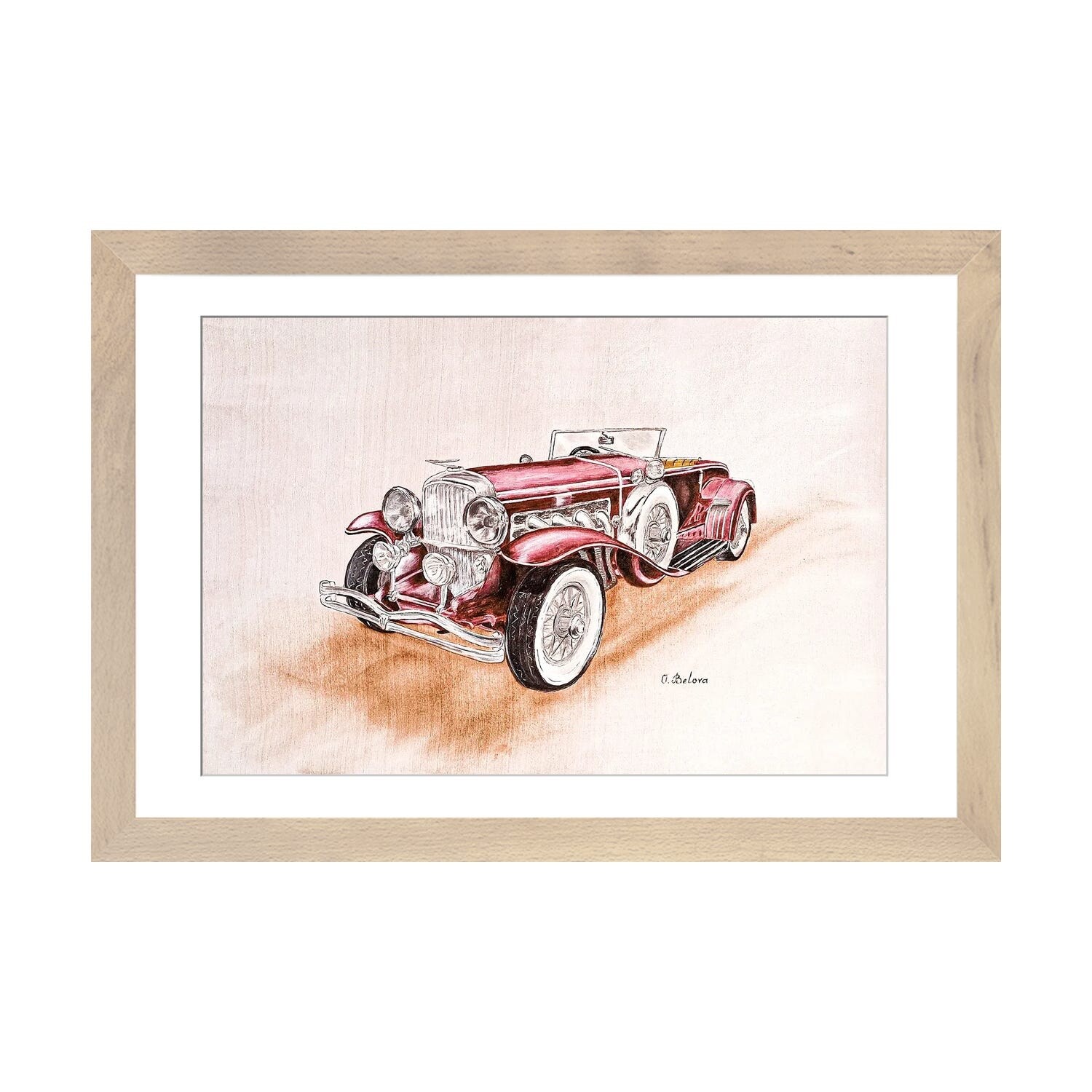 Designart "Beautiful Vintage Car in Retro Colors III" Retro Car Framed Art Print