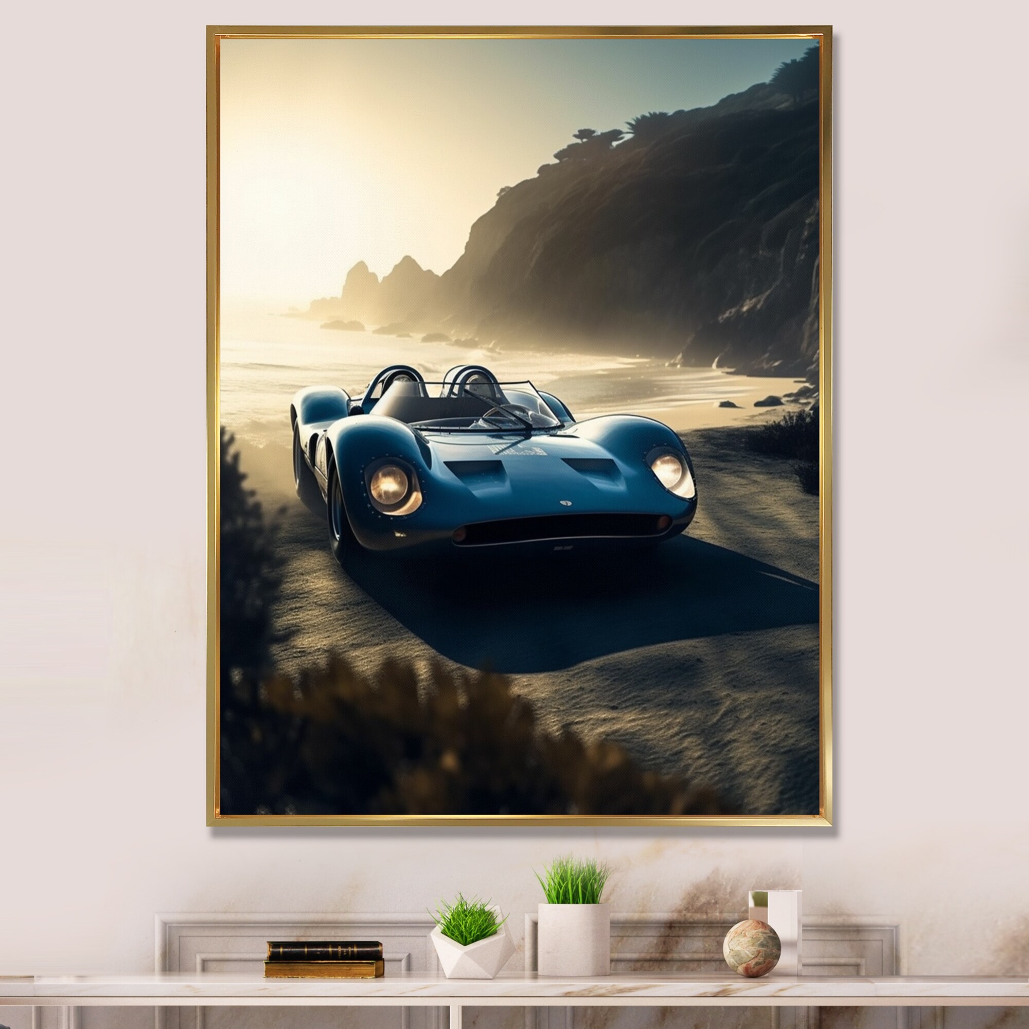 Designart "Blue And Yellow Vintage Car Charisma I" Retro Car Framed Canvas Print