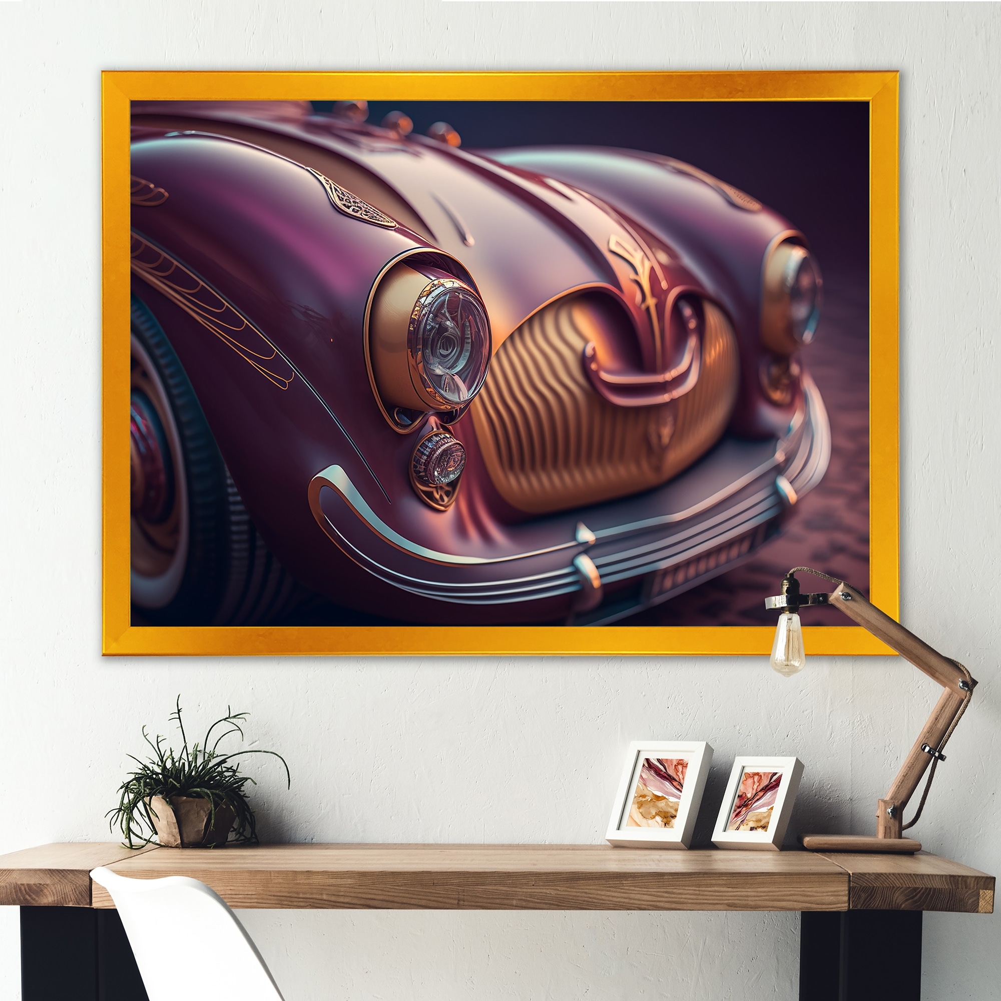 Designart "Orange And Purple Vintage Classic Car" Retro Car Framed Canvas Prints