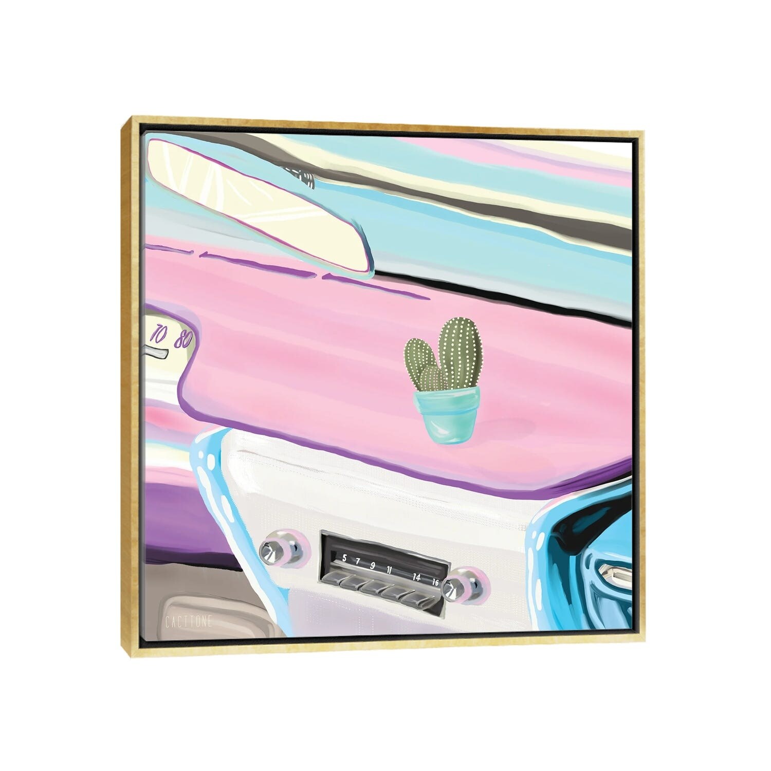 iCanvas "Pink Car And Cactus" by Cacttone by Ulee Framed