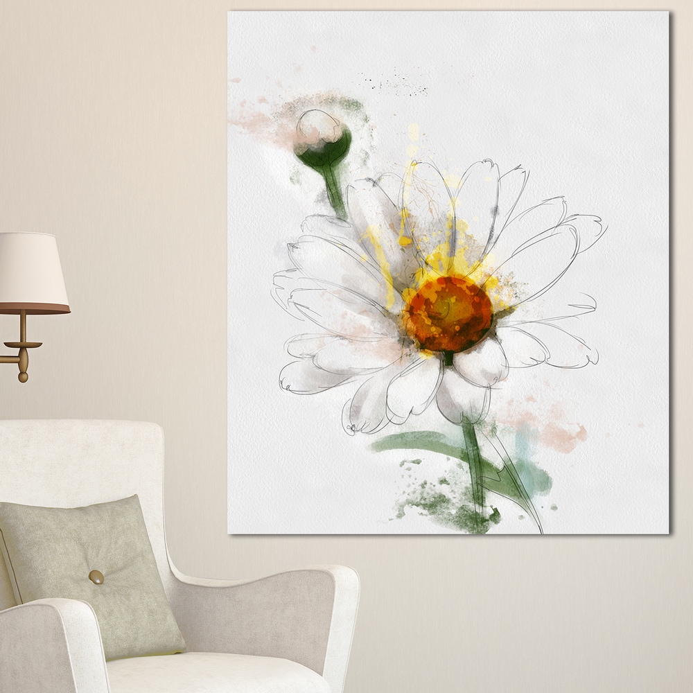 Designart "Hand-drawn Watercolor Chamomile" Floral Canvas Artwork Print