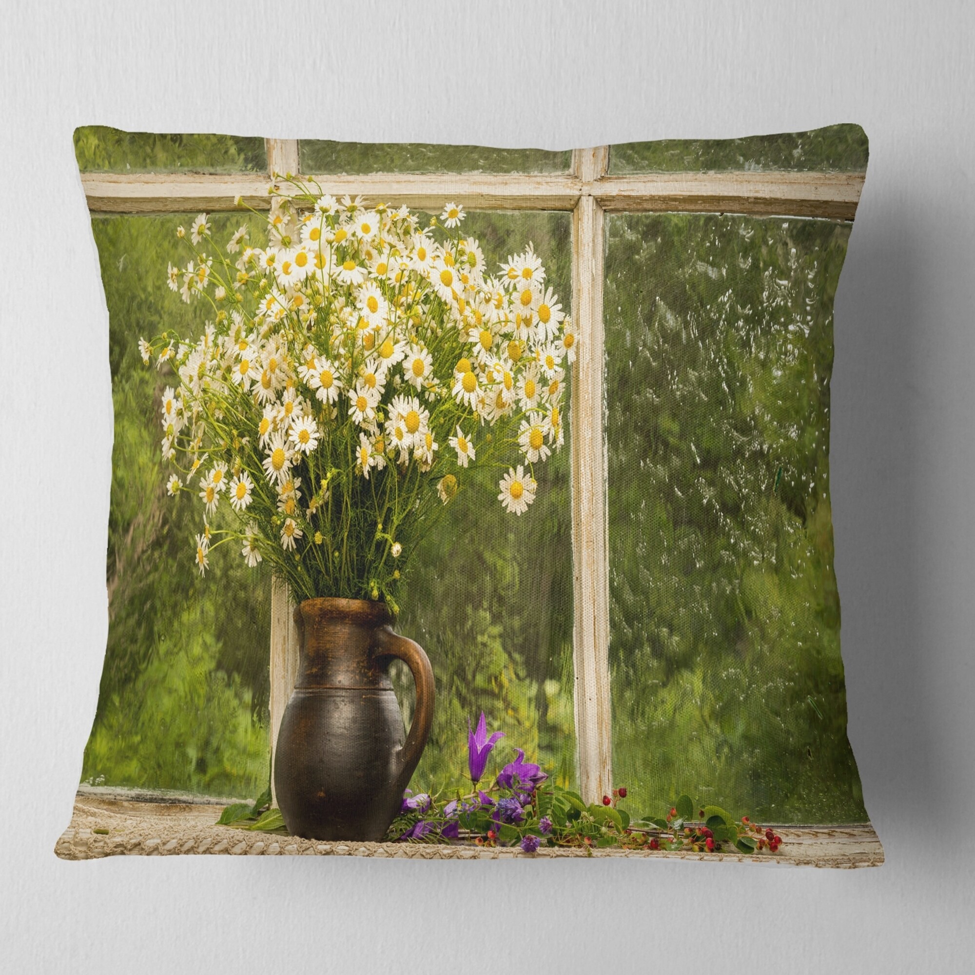 Designart 'Still Life Bouquet of Chamomiles' Modern Landscape Printed Throw Pillow