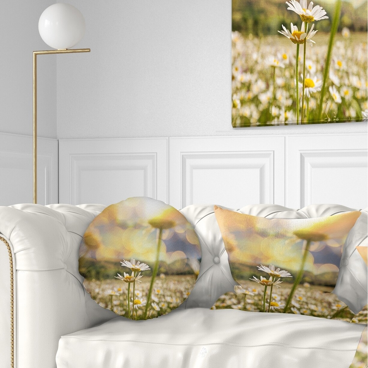 Designart 'Chamomiles with Hills on Background' Flower Throw Pillow