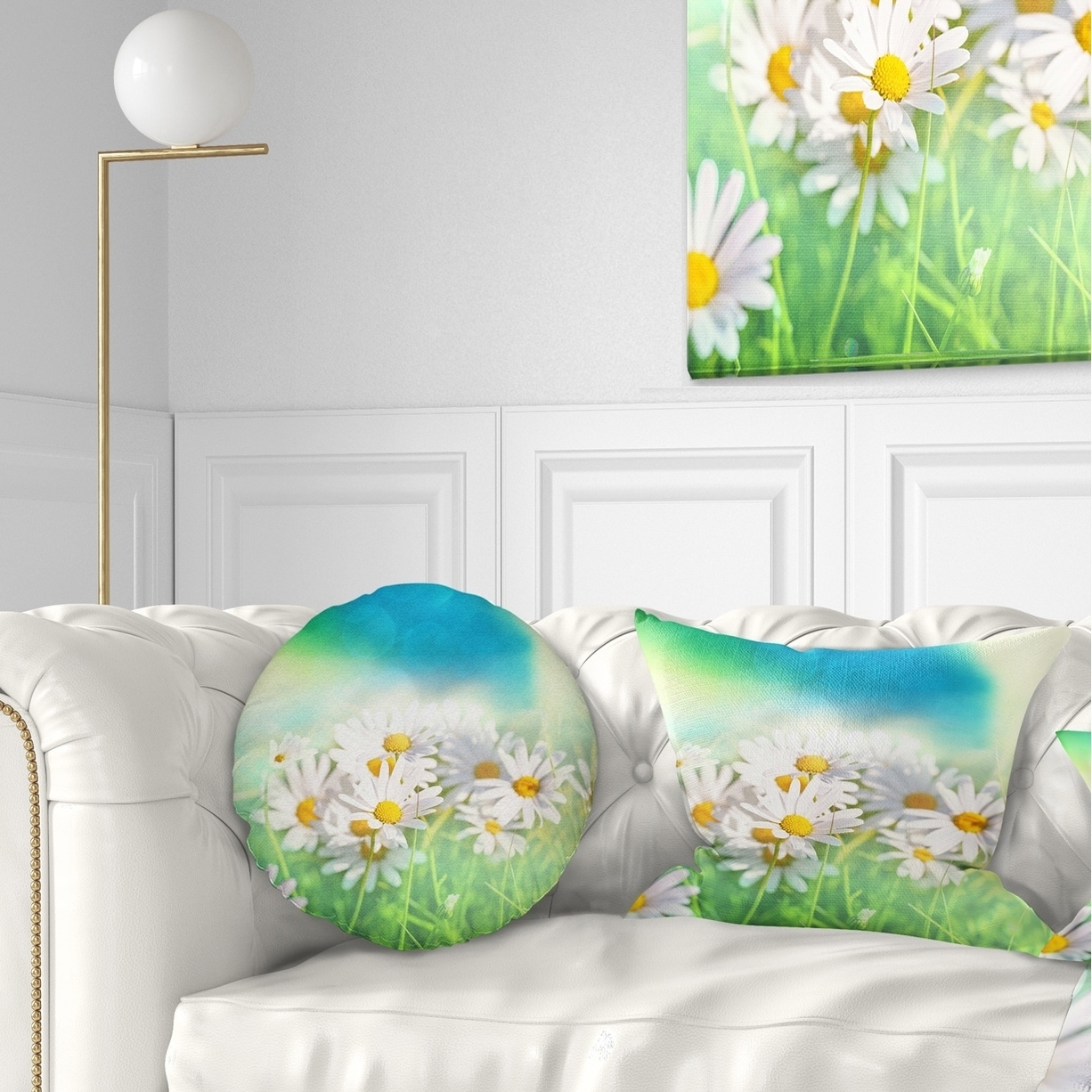 Designart 'Little White Chamomiles in Garden' Floral Throw Pillow
