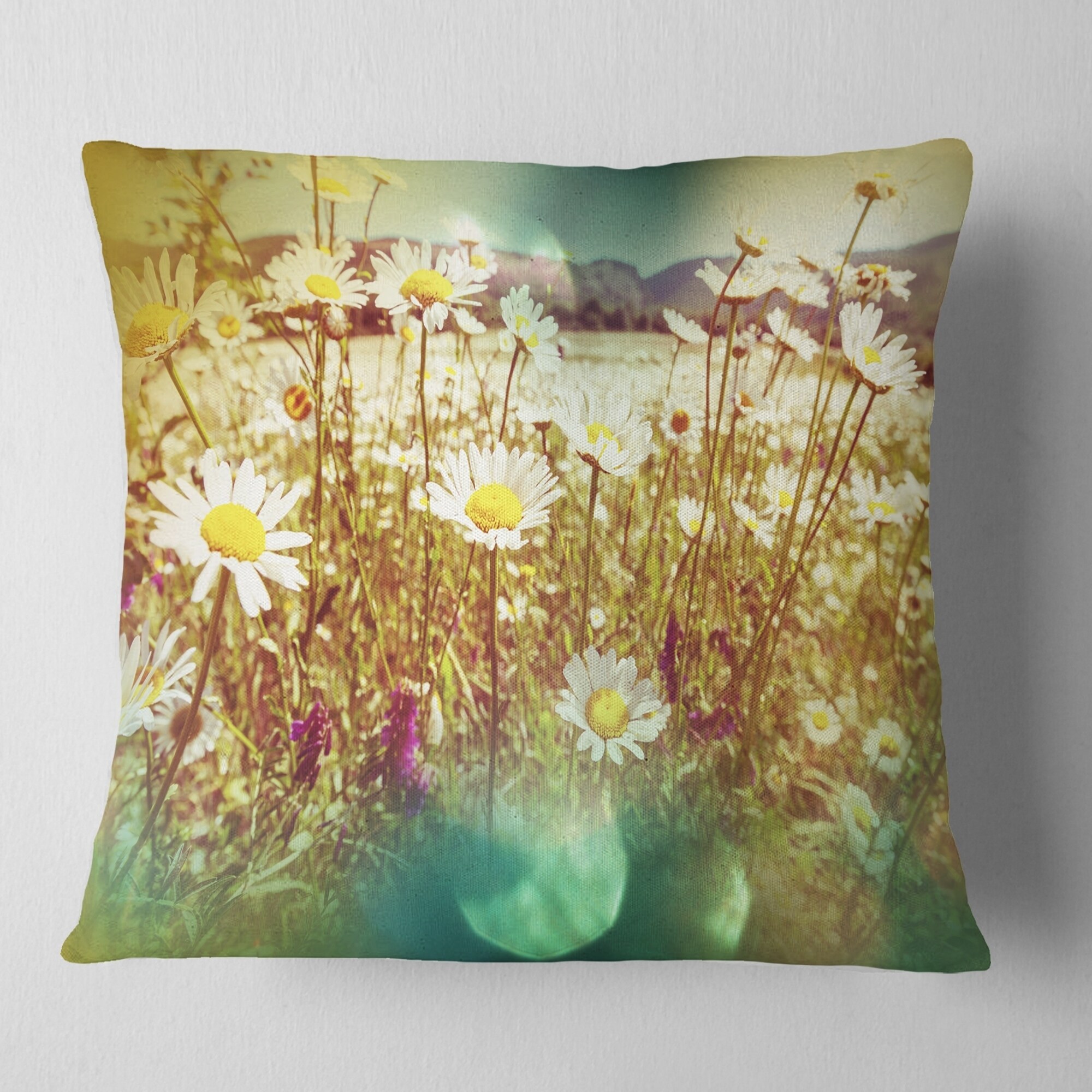 Designart 'Wild Spring Chamomile Flowers' Traditional Printed Throw Pillow