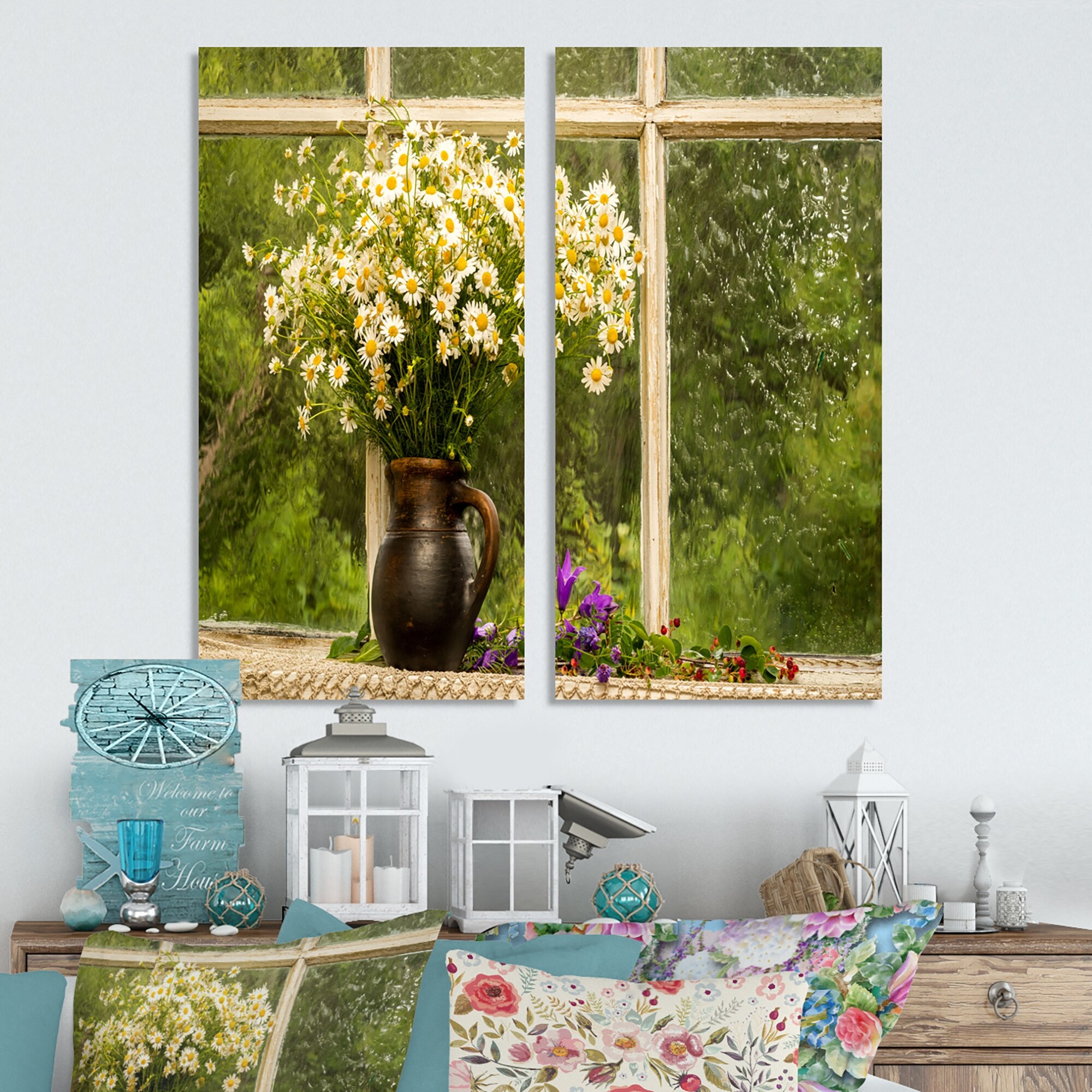 Designart "Still Life Bouquet of Chamomiles" Modern Landscape Canvas Wall Art Print 2 Piece Set