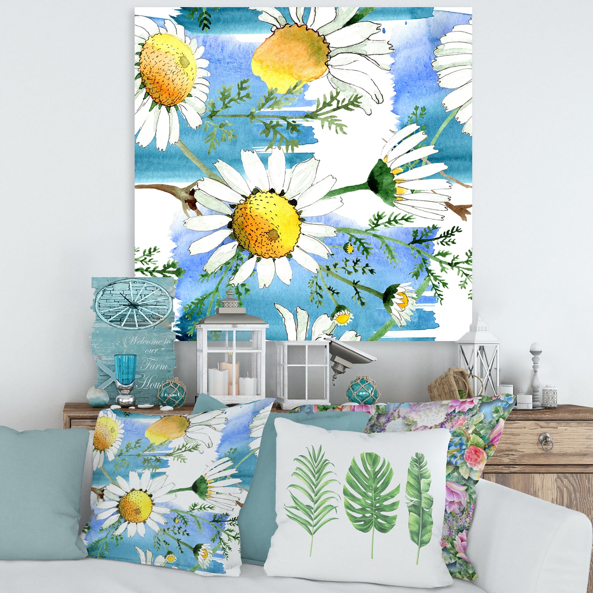 Designart "Chamomiles on Blue Background" Floral Canvas Art Print