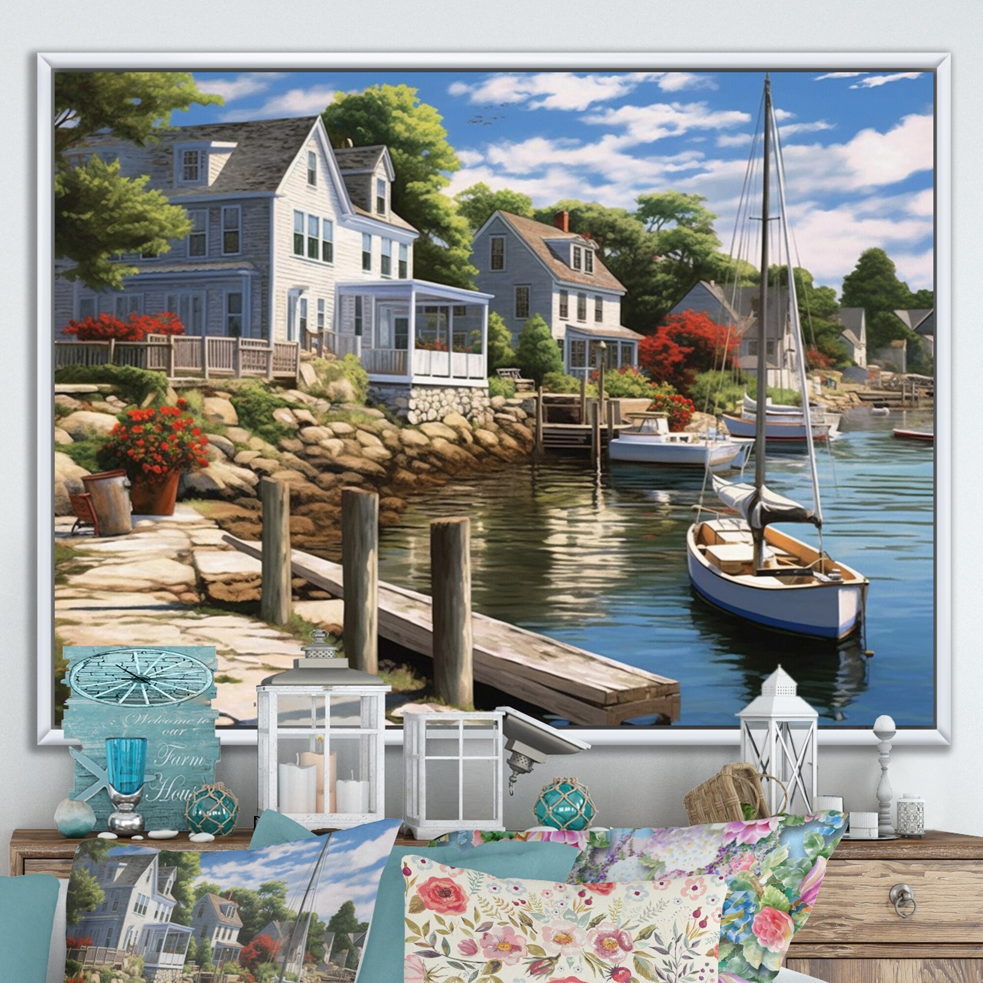 Designart "Connecticut'S Port Charm" Connecticut Framed Wall Art Prints