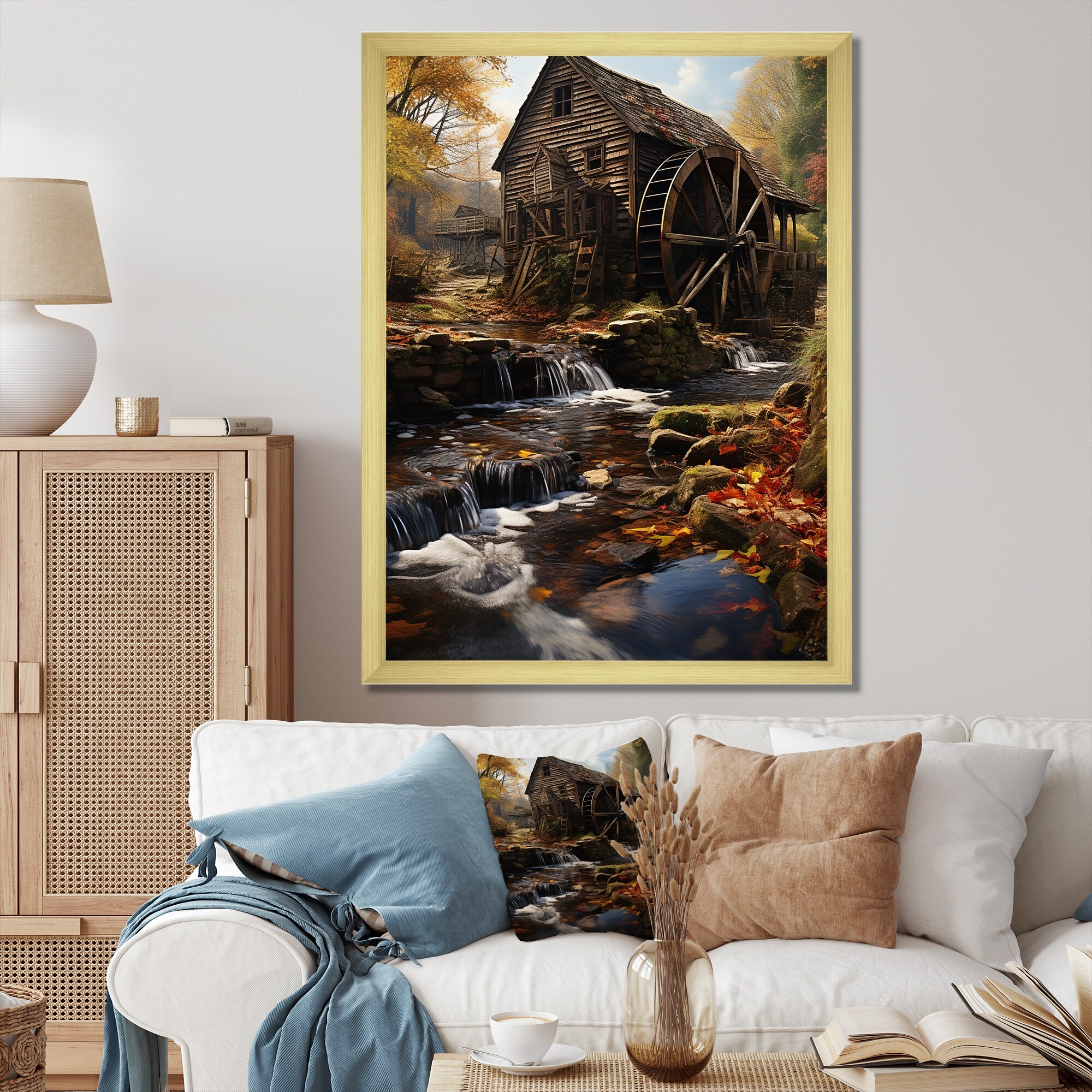 Designart "Green Brown Mills Rustic Charm Green Photo II" Mills Framed Wall Art Prints
