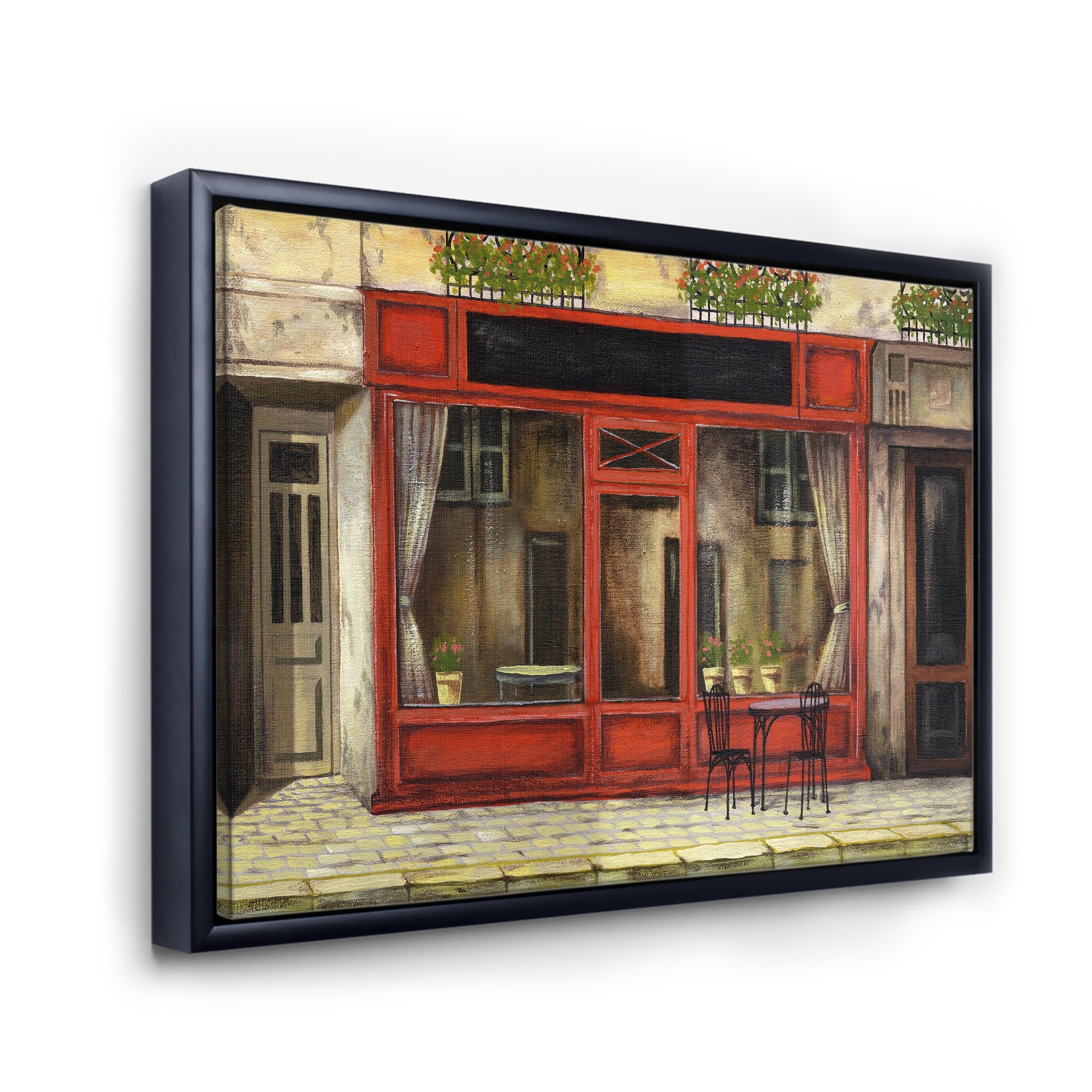 Designart "Red Facade of Charming Shop in Paris I" French Country Framed Canvas Wall Art Print