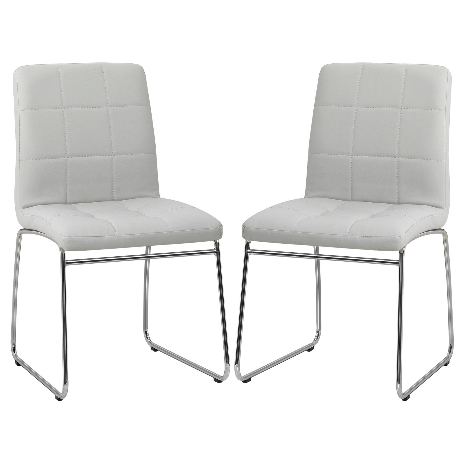 Modern Checkered Faux Leather Dining Chairs with Chrome Legs