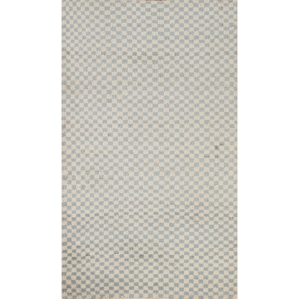Checkered Moroccan Area Rug Hand-knotted Wool Contemporary Carpet - 3'1" x 4'11"