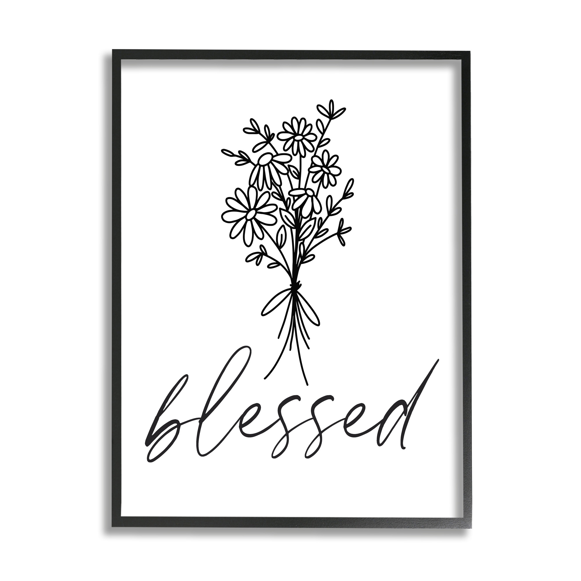 Stupell Industries Cheerful Daisy Flowers Botanical Arrangement Blessed Script Framed Wall Art, Design by Lettered and Lined