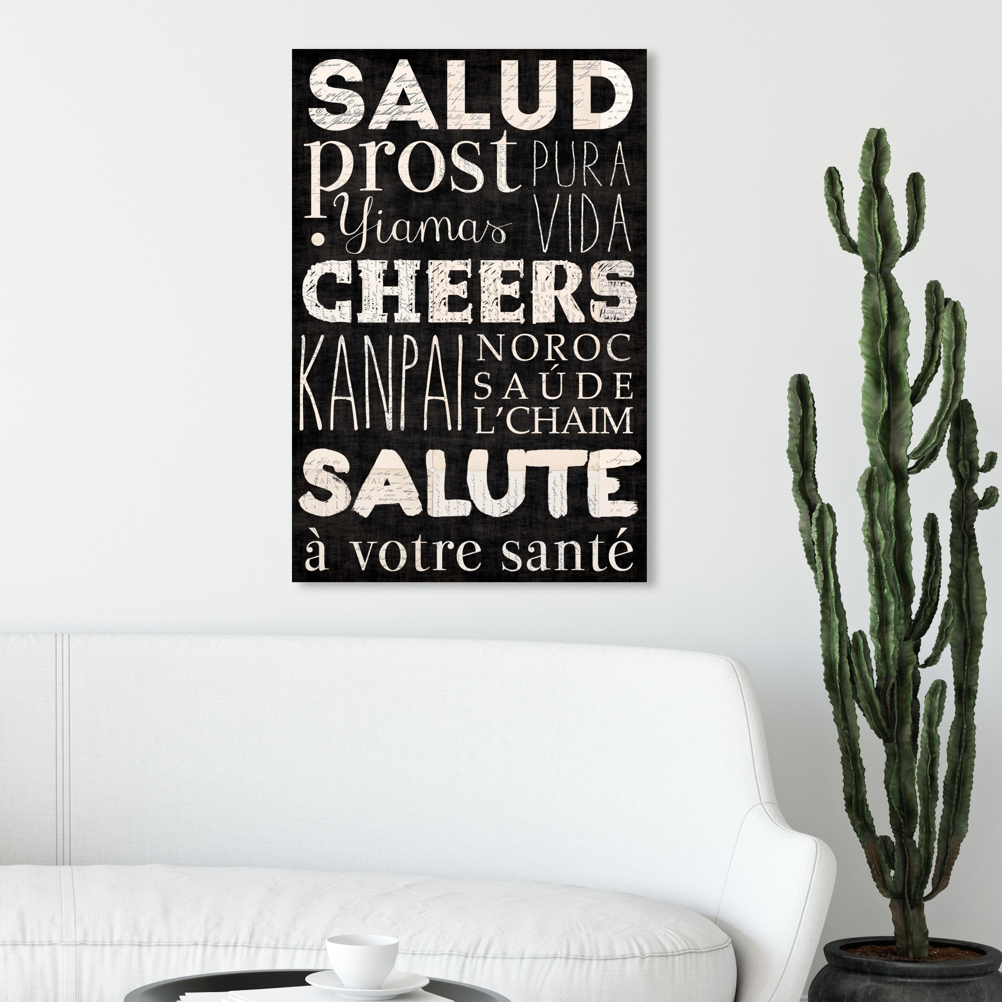 Wynwood Studio 'Cheers' Typography and Quotes Wall Art Canvas Print Quotes and Sayings - Black, White