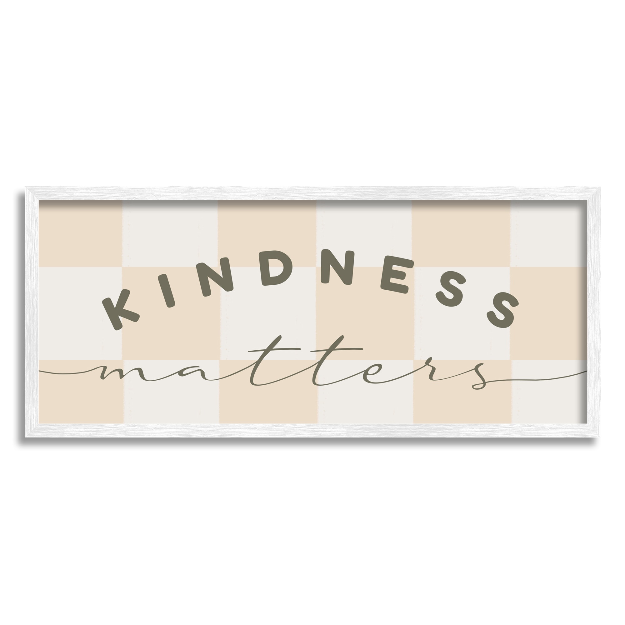 Stupell Kindness Matters Cheerful Checkered Pattern Typography Framed Wall Art, Design by Daphne Polselli - Beige