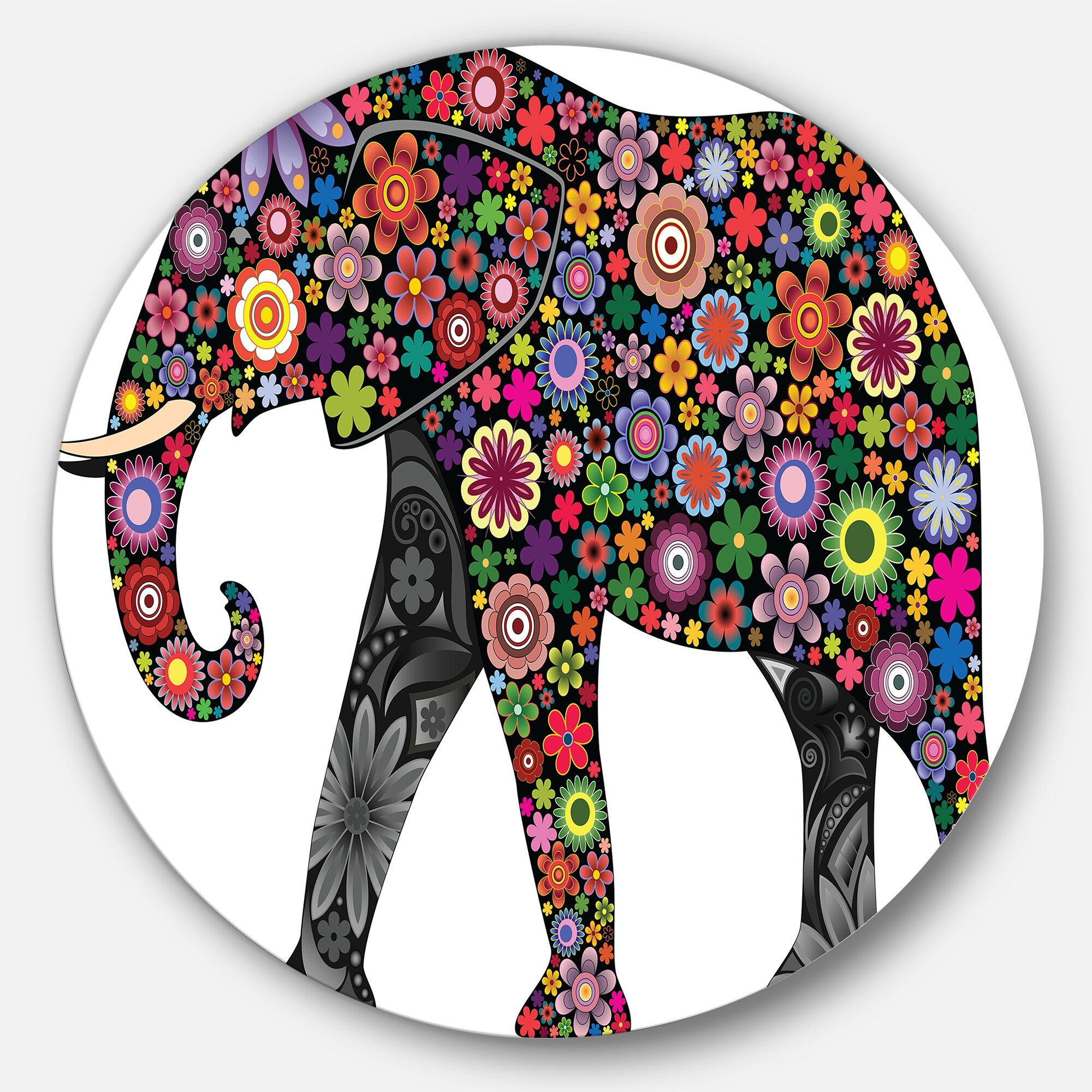 Designart 'Cheerful Elephant' Animal Digital Art Circle Wall Art