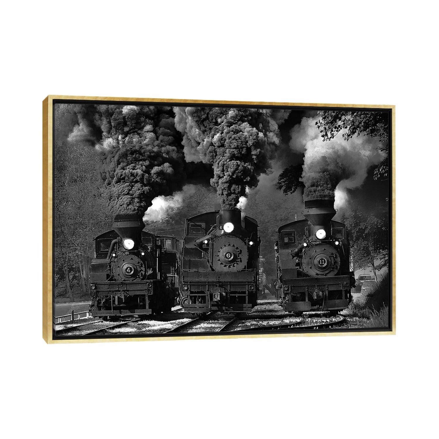 iCanvas "Train Race in B&W" by Chuck Gordon Framed Canvas Print