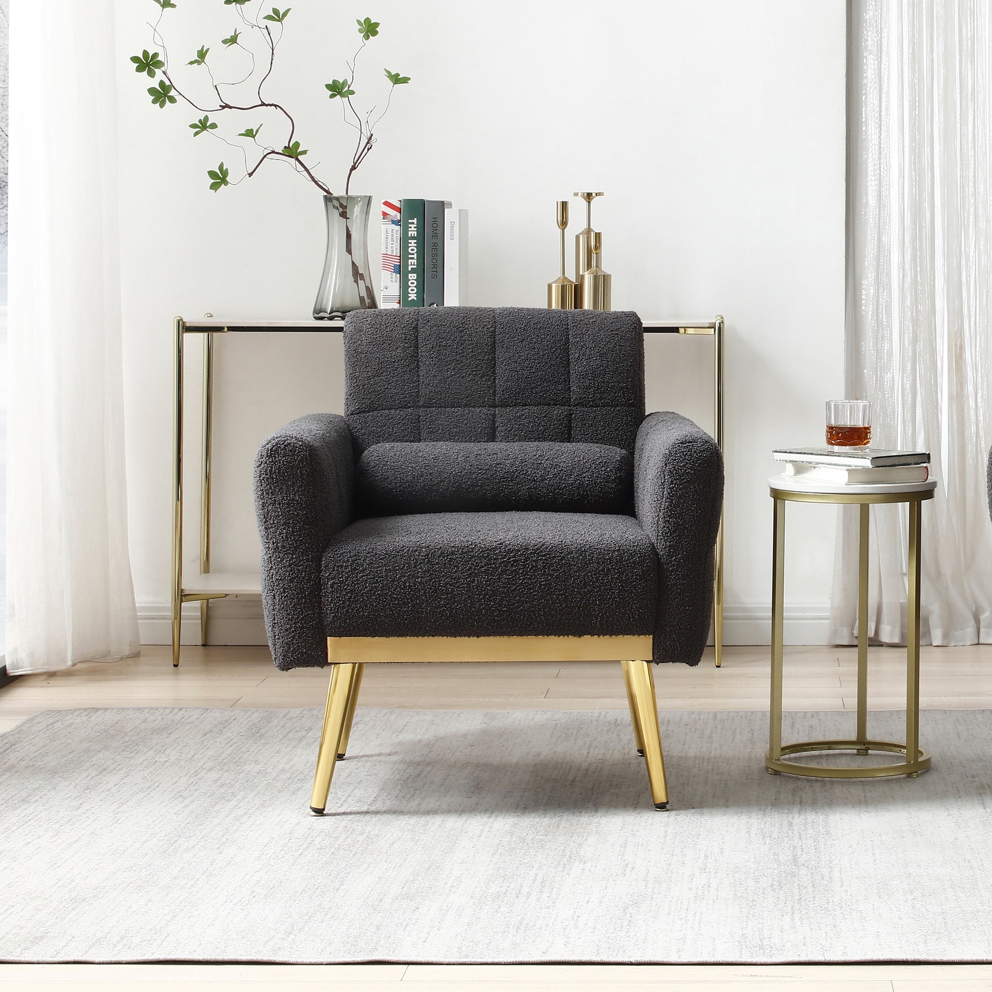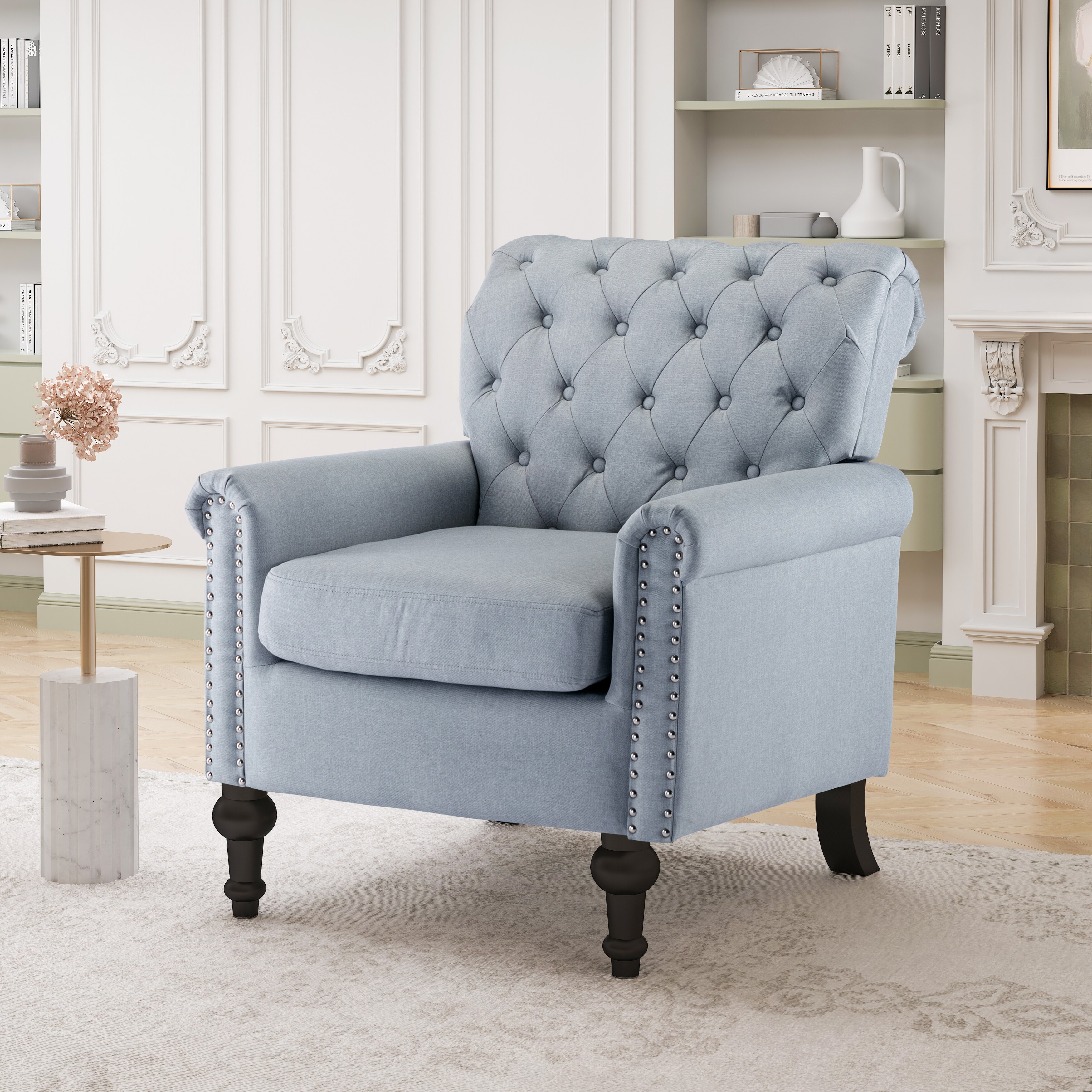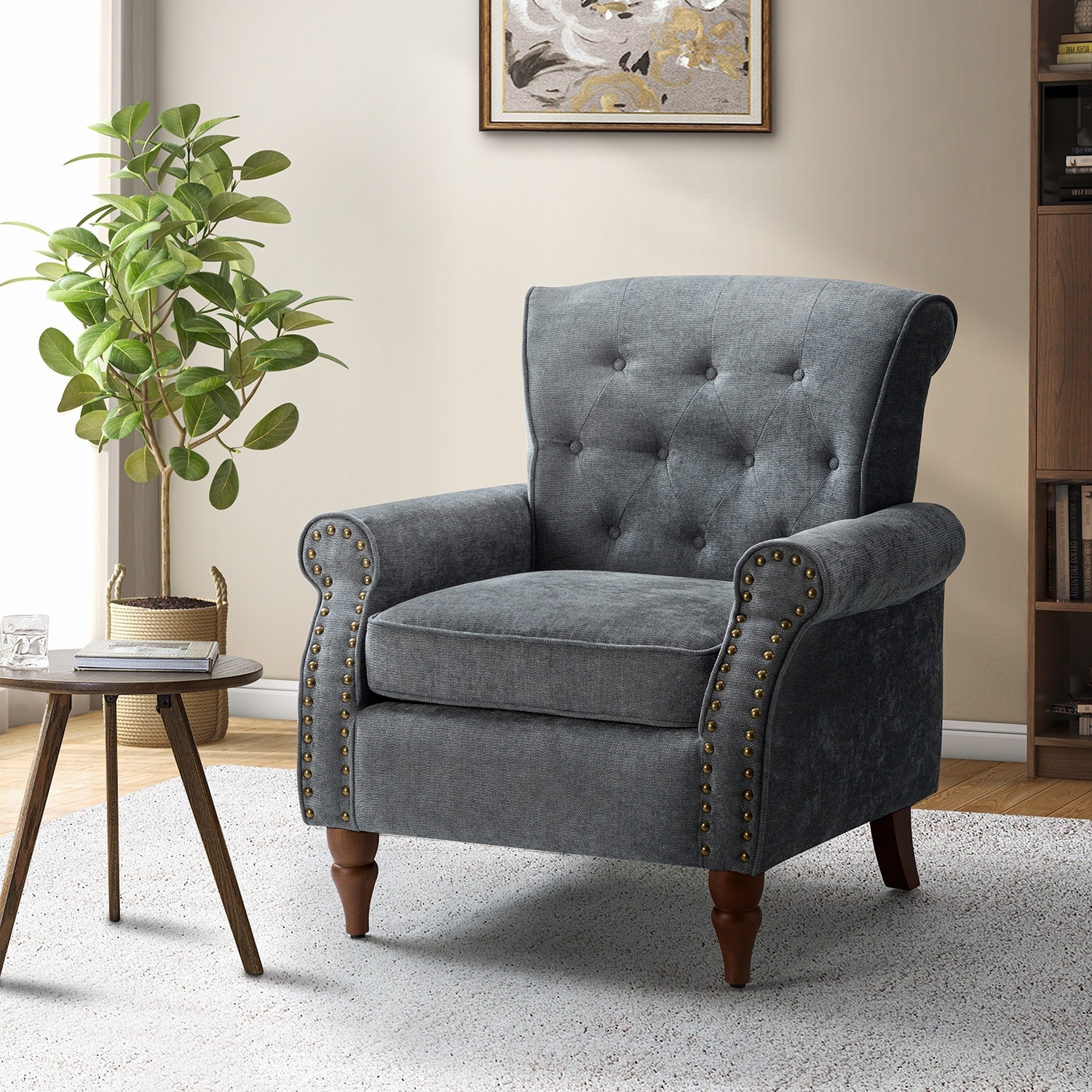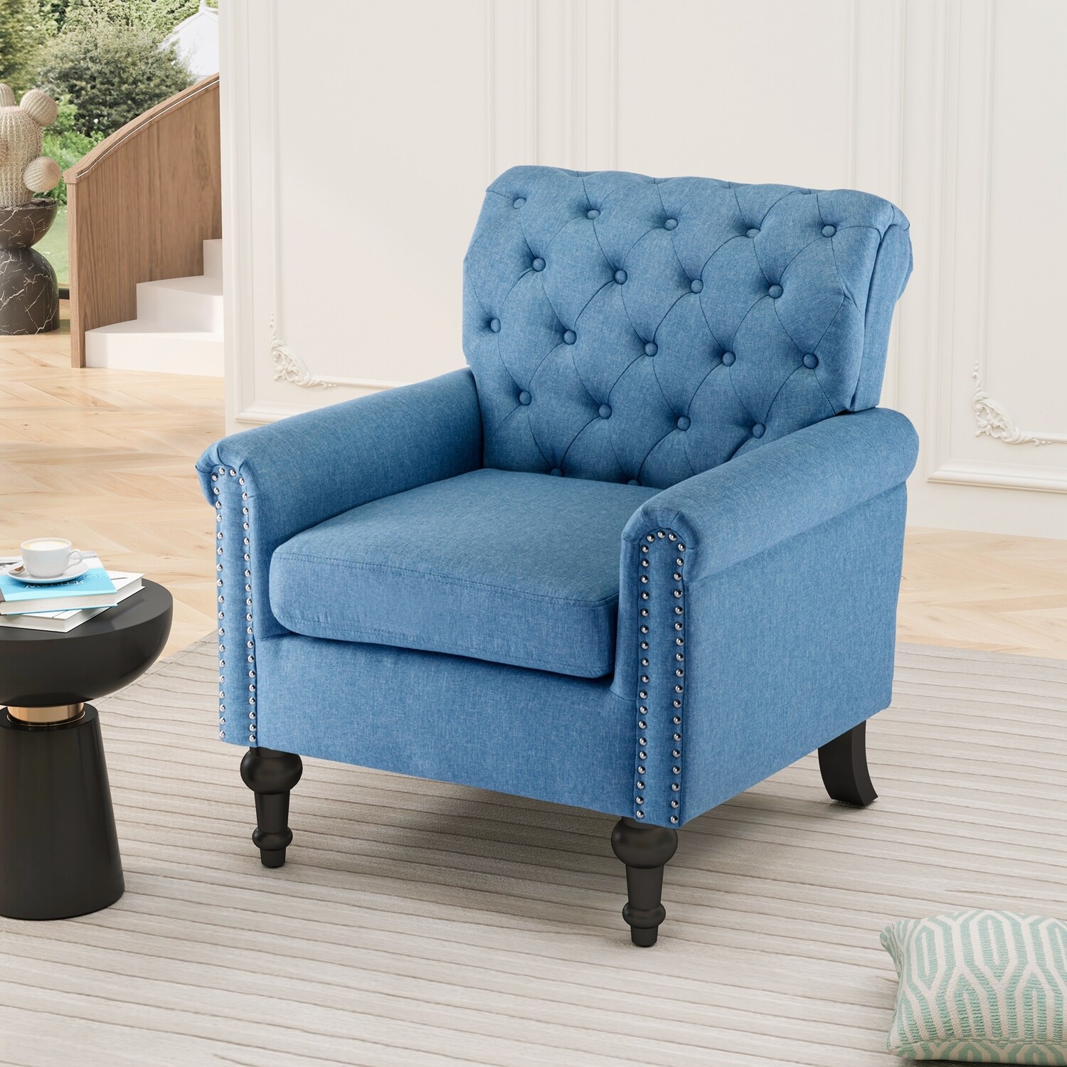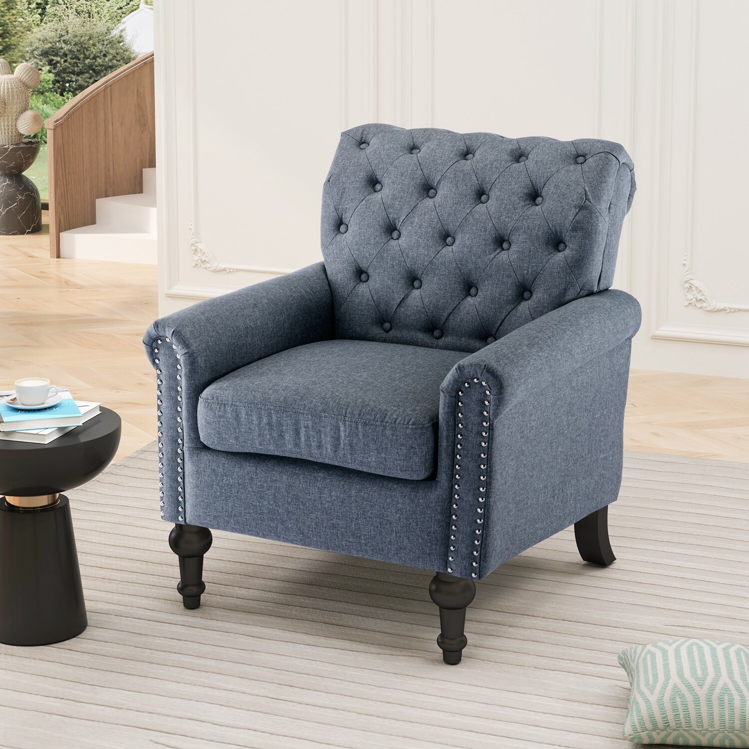 Indiges Transitional Comfy Nailhead Accent Arm Chair with Tufted Back by HULALA HOME