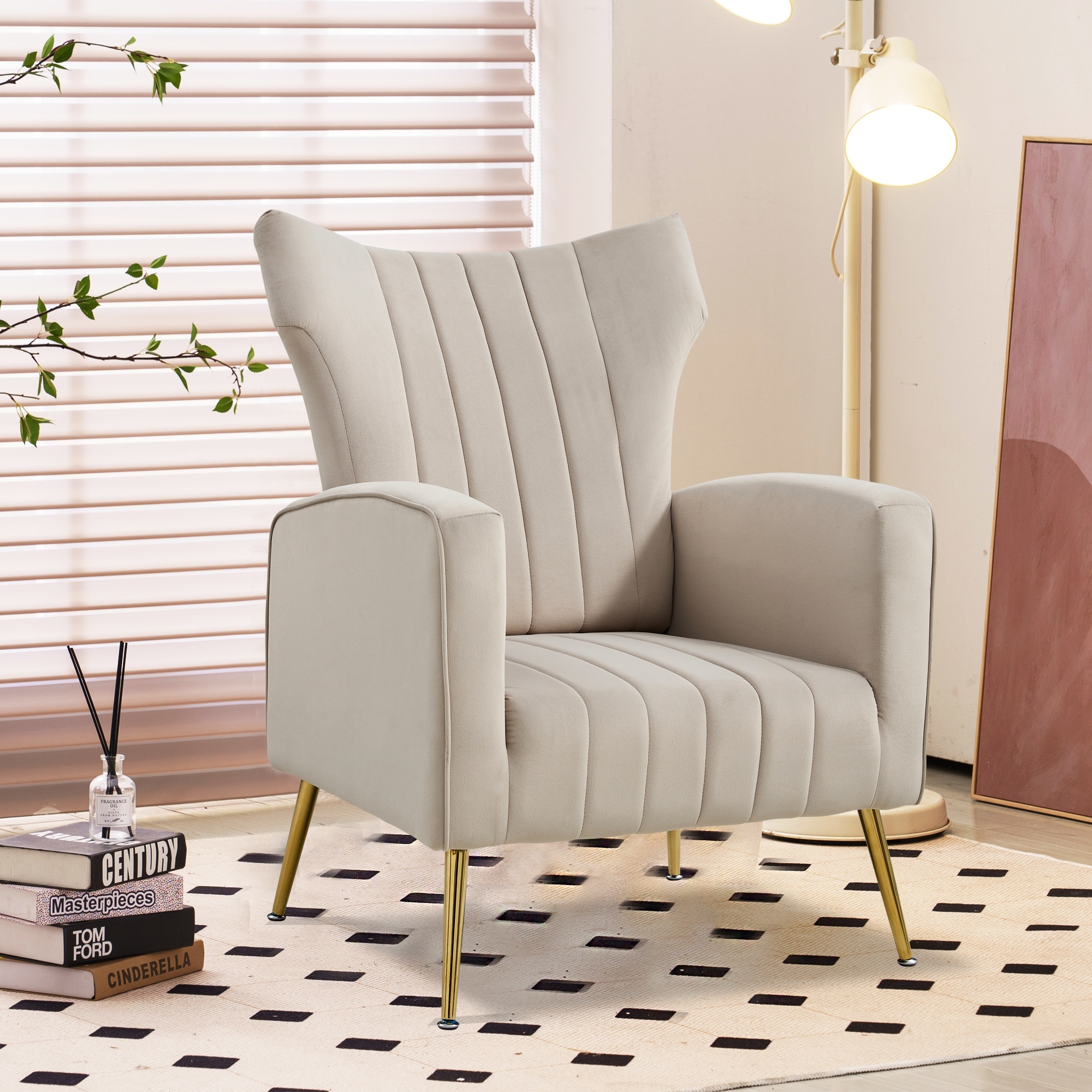 Modern Velvet Accent Chair with Arms, Wingback Reading Chair, Comfy Upholstered Single Leisure Sofa for Living Room Bedroom