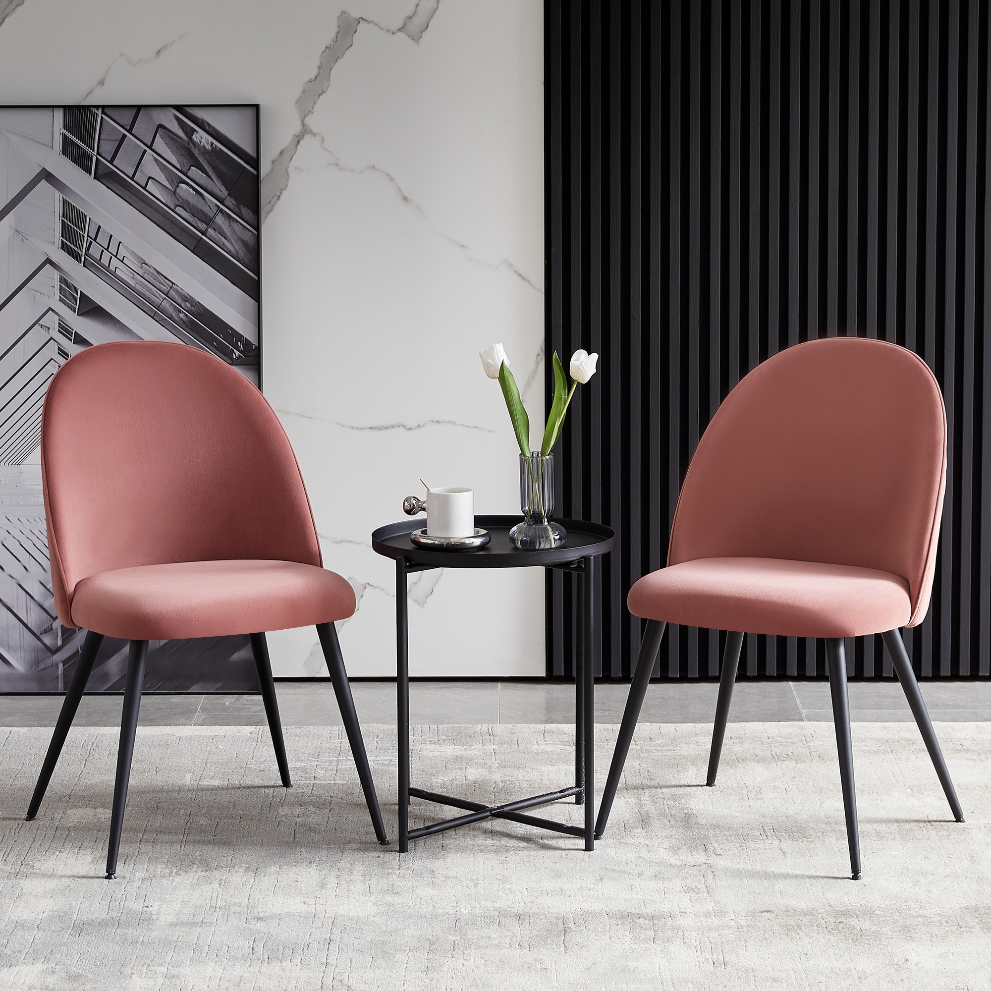 Soft Velvet Dining Chairs Set of 2 Comfy Upholstered Side Chair Accent Chairs, Pink
