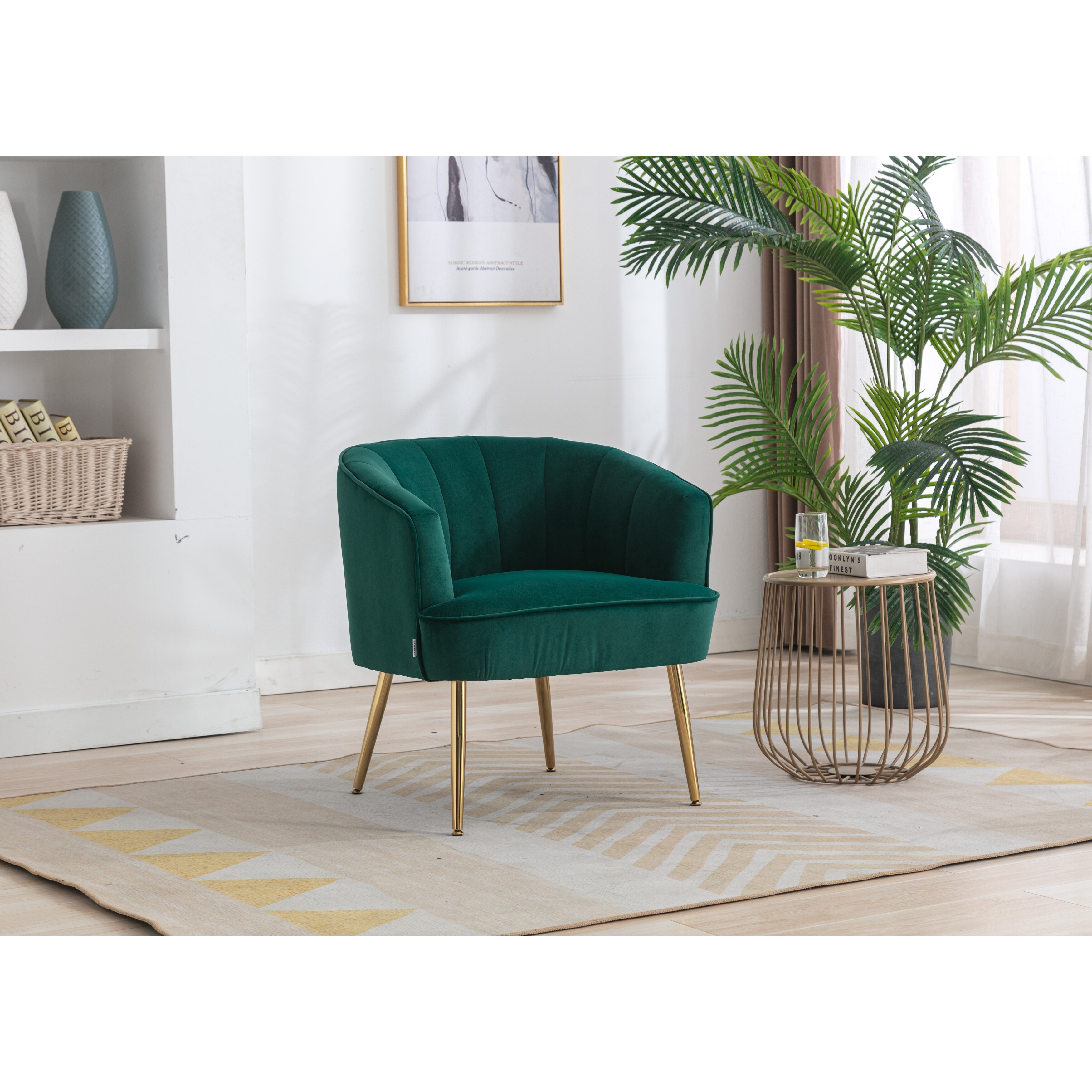Stylish Modern Armchair Comfy Velvet Fabric Padded Seat Accent Chair Curved Back Tubchair with Metal Legs