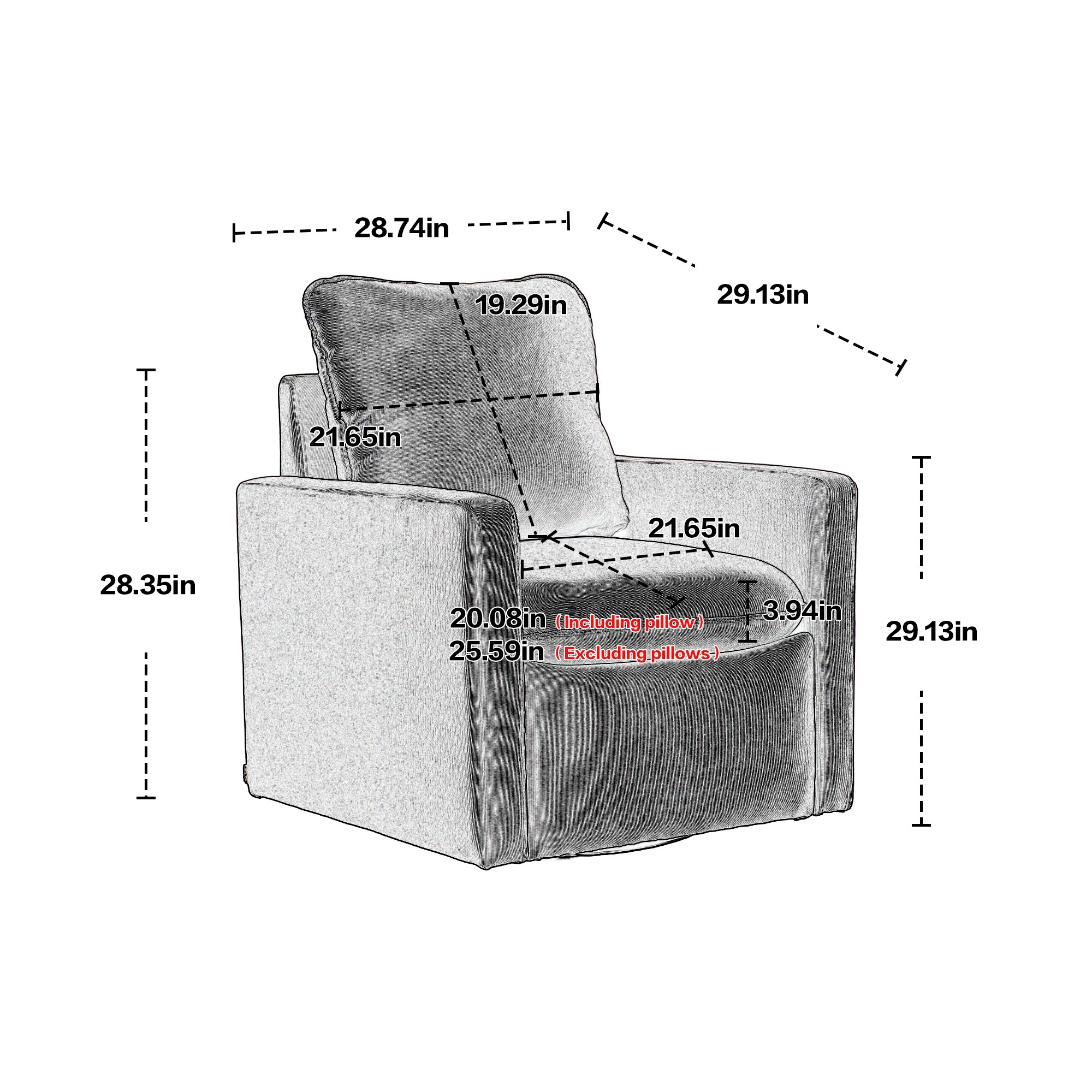 23.6"W Swivel Accent Chair and Comfy Accent Sofa Chair, 360 Degree Club Chair