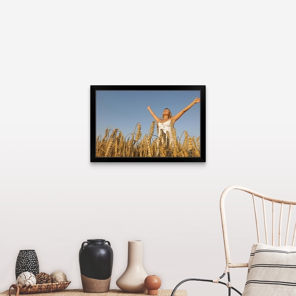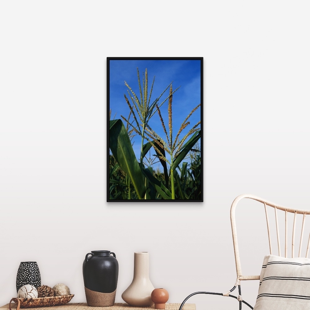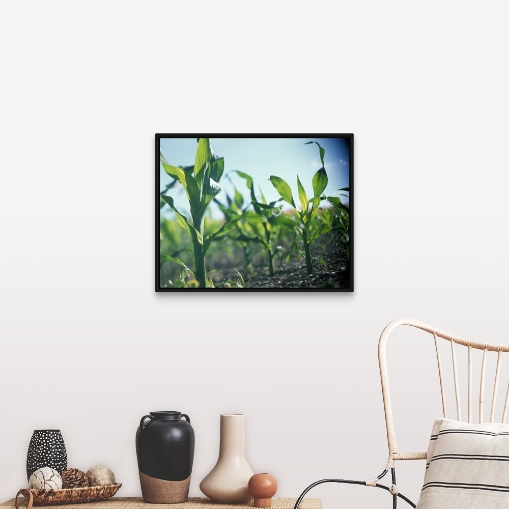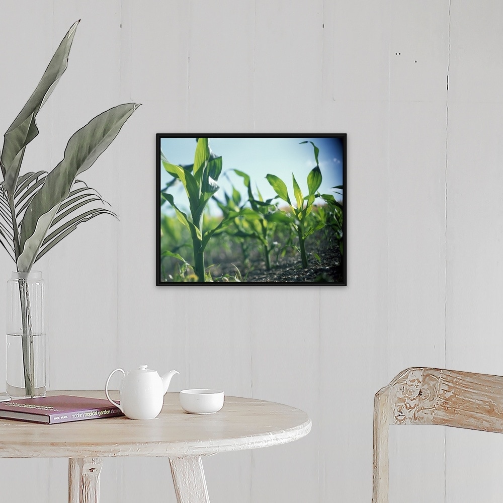 "Corn crop in a field, Baden-Wurttemberg, Germany" Black Float Frame Canvas Art