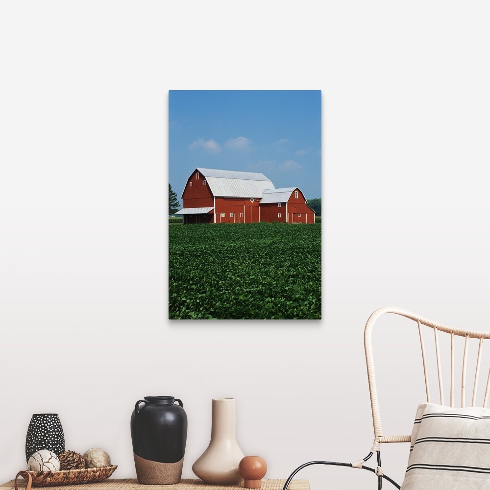 "Barn and Corn Field " Black Float Frame Canvas Art