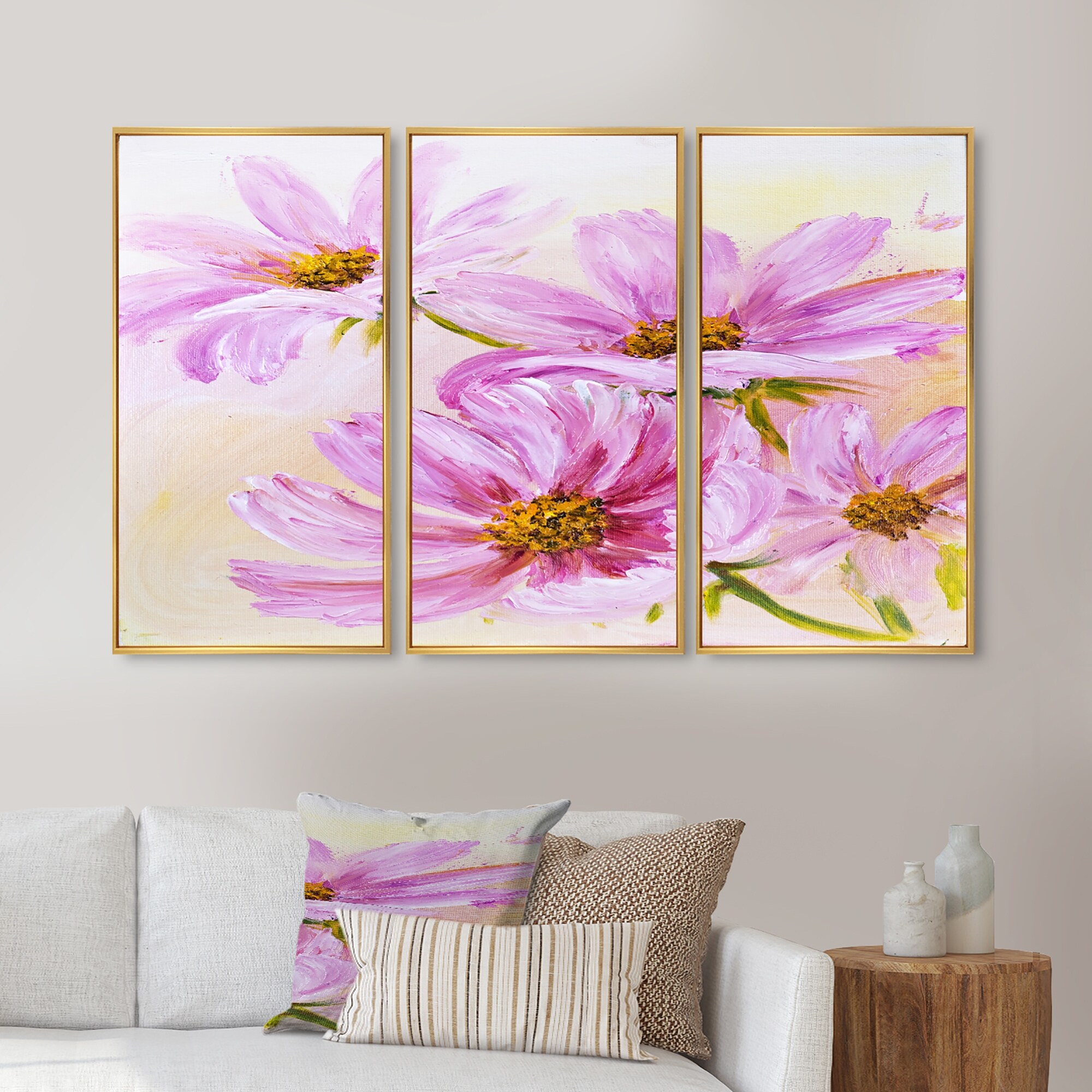 Designart "Blooming Pink Cosmos Flowers" Floral Framed Art Prints Set of 3 - 4 Colors of Frames