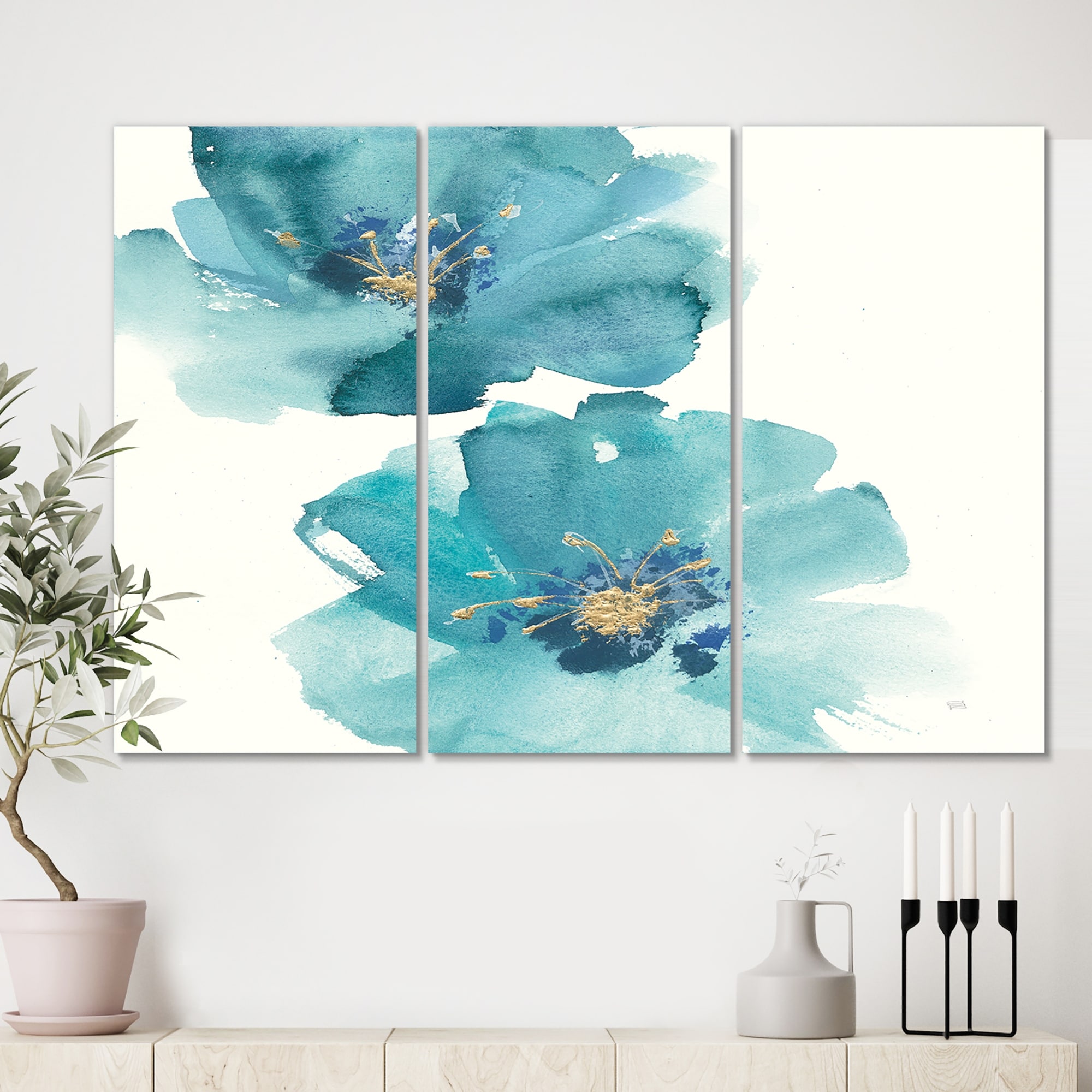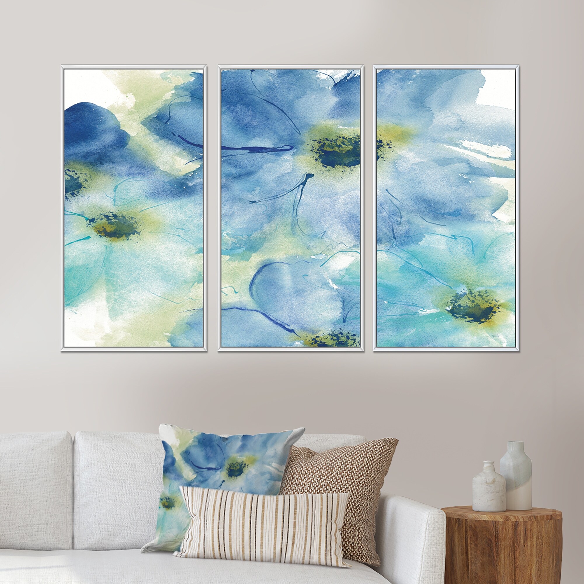 Designart "Blue Cosmos Indigo I" Farmhouse Framed Canvas Wall Art Print Set of 3 - 4 Colors of Frames