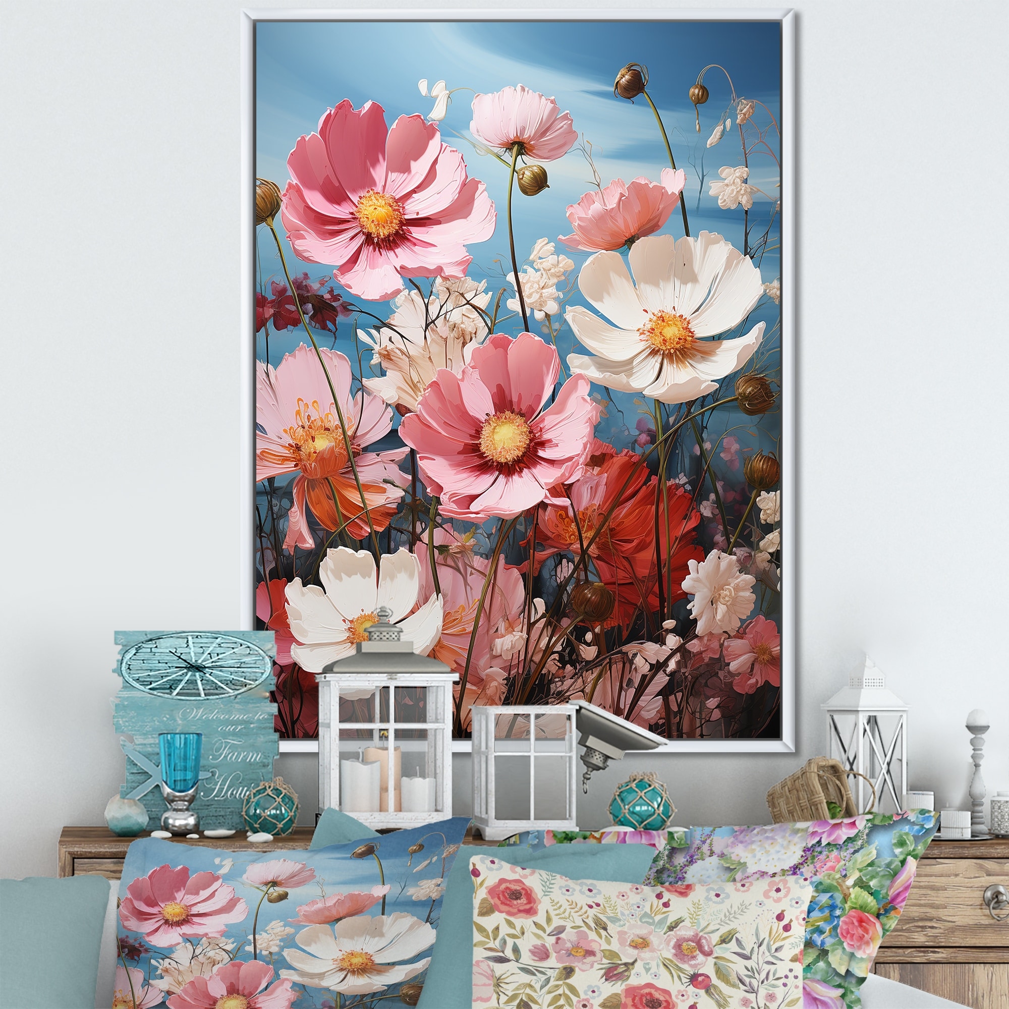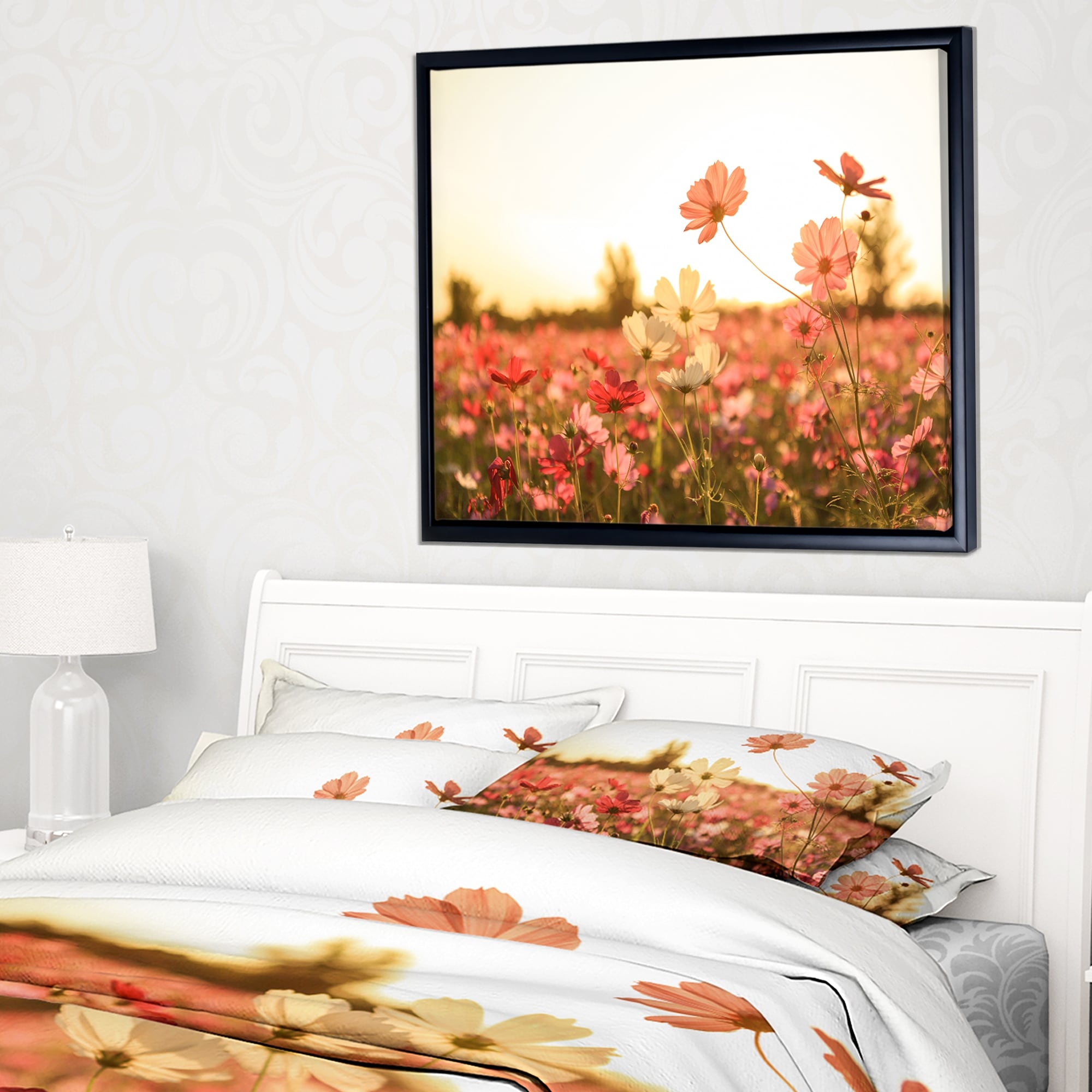 Designart "Cosmos Flowers on Sunset Background" Floral Framed Canvas Art Print
