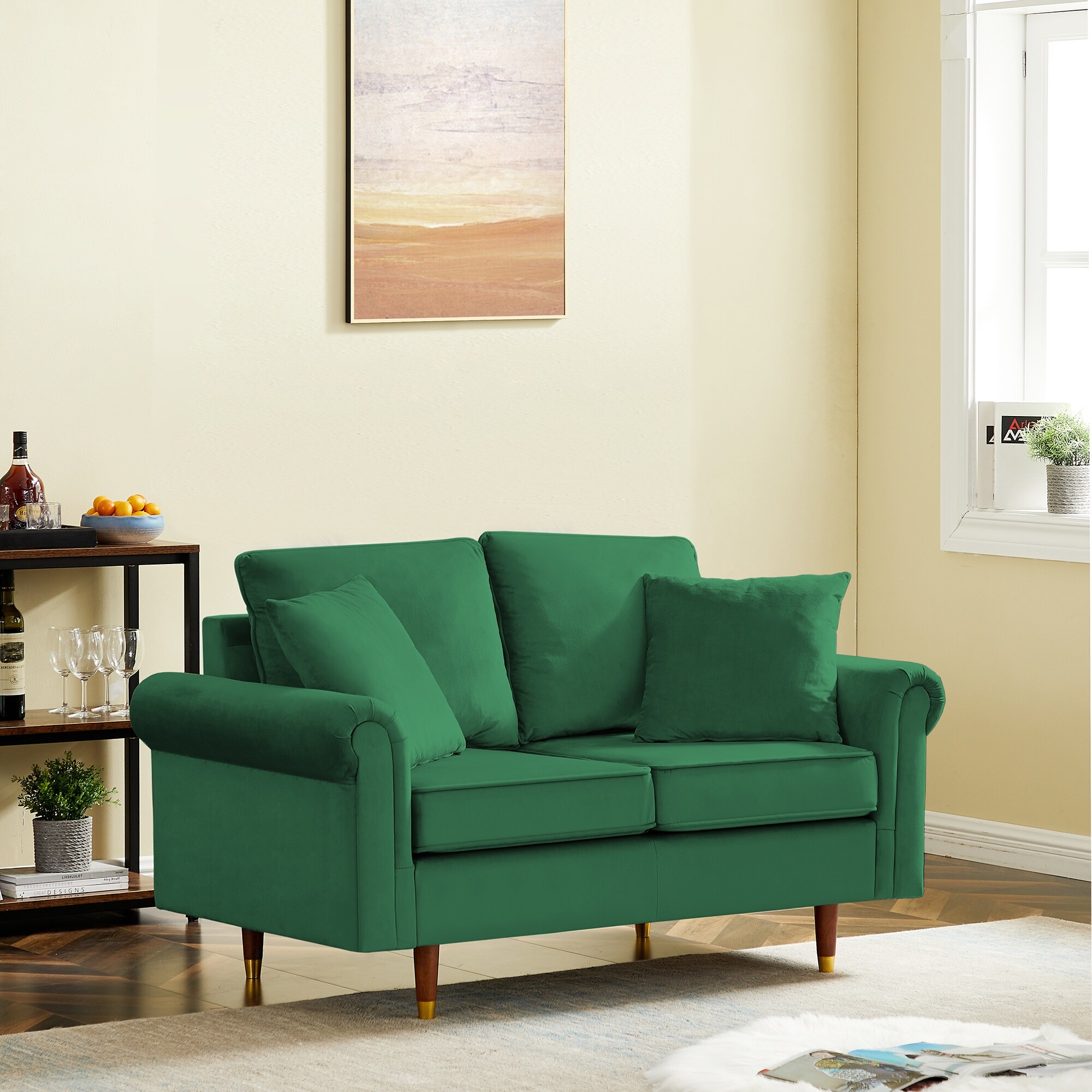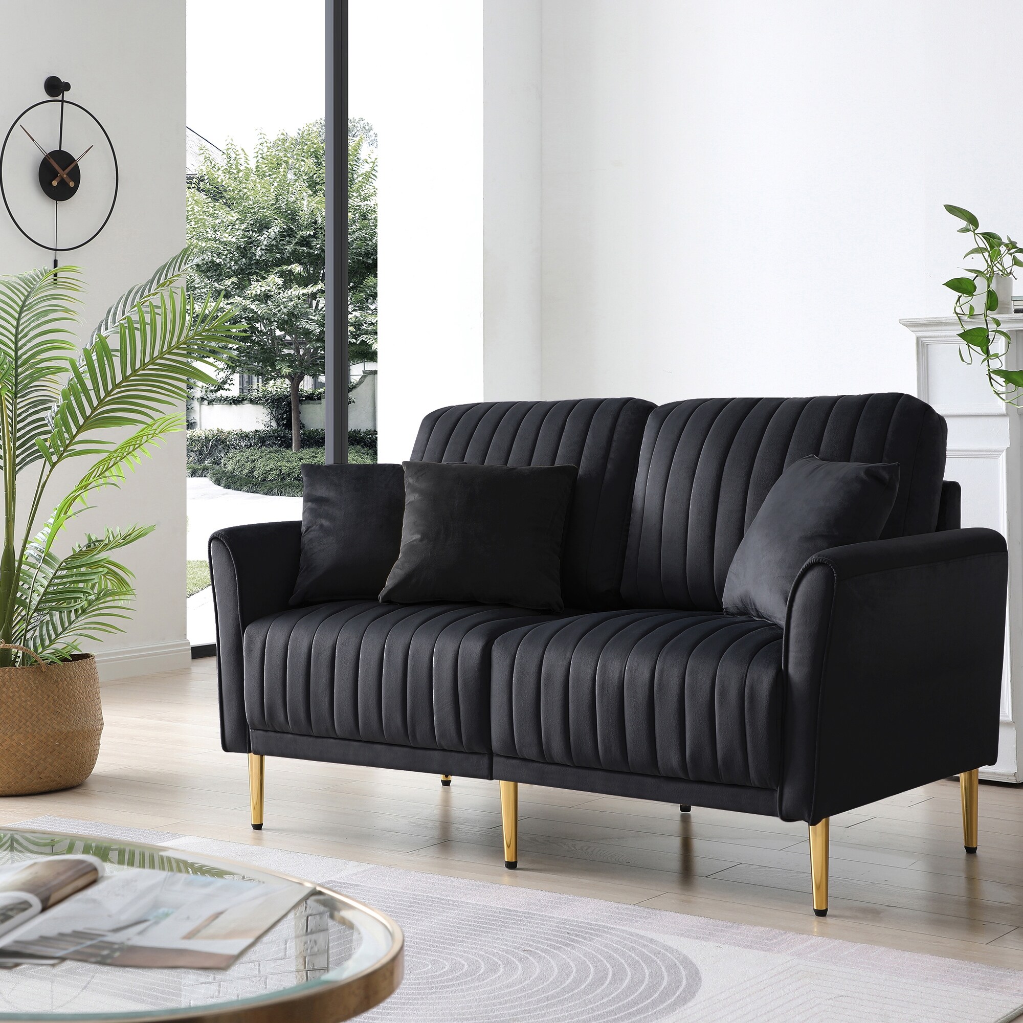 Modern Velvet Sofa Couch with 2 Pillows, Loveseat Sofa